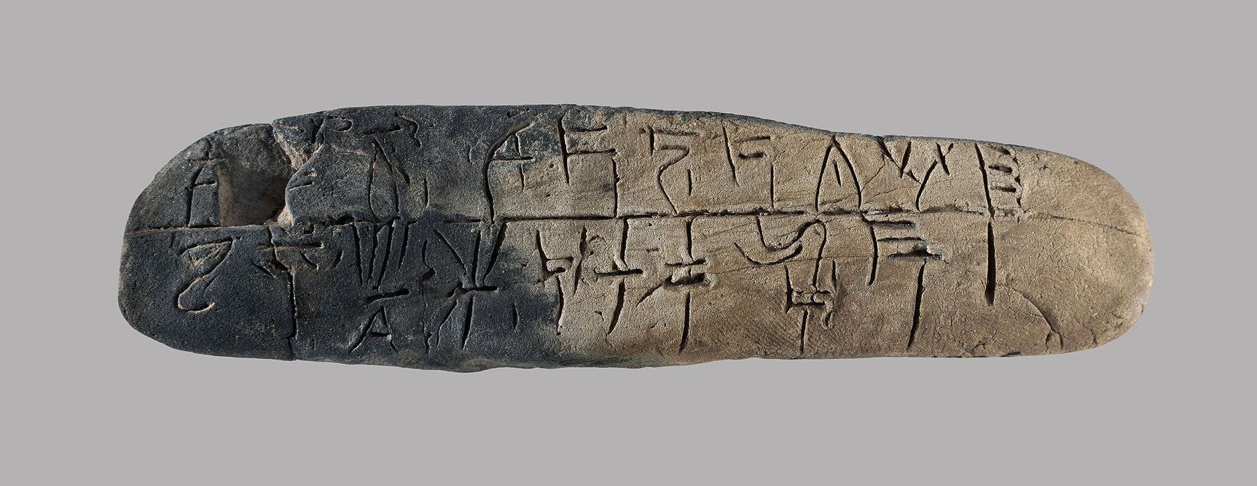 Εικ.4 Φυλλόσχημη πινακίδα Γραμμικής Β Γραφής από την Πύλο (περίπου το
