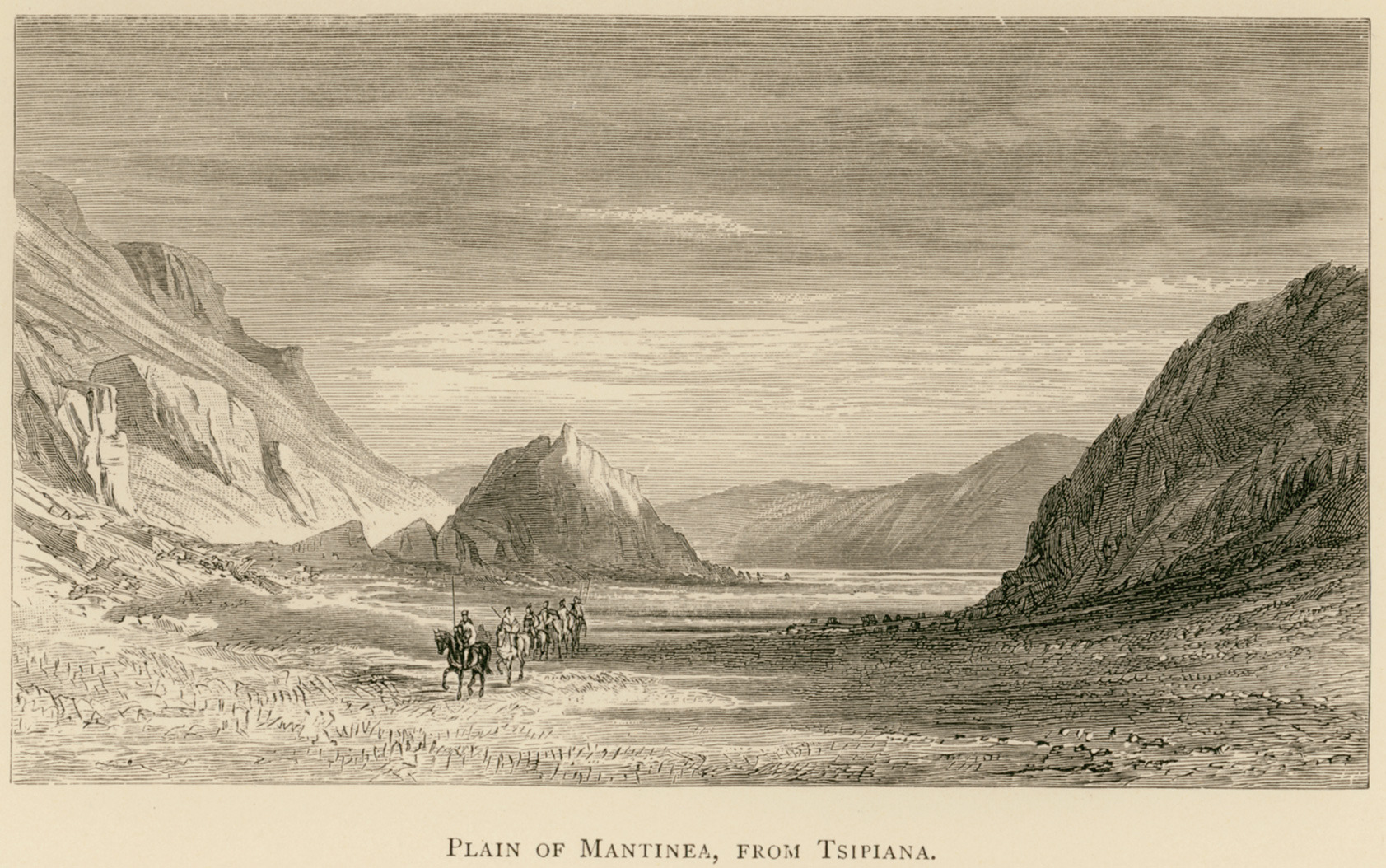 Εικ.2: Η πεδιάδα της Μαντίνειας από τα Τσιπιανά. Farrer, Richard Ridley, A Tour in Greece 1880, Εδιμβούργο, William Blackwood, 1882.