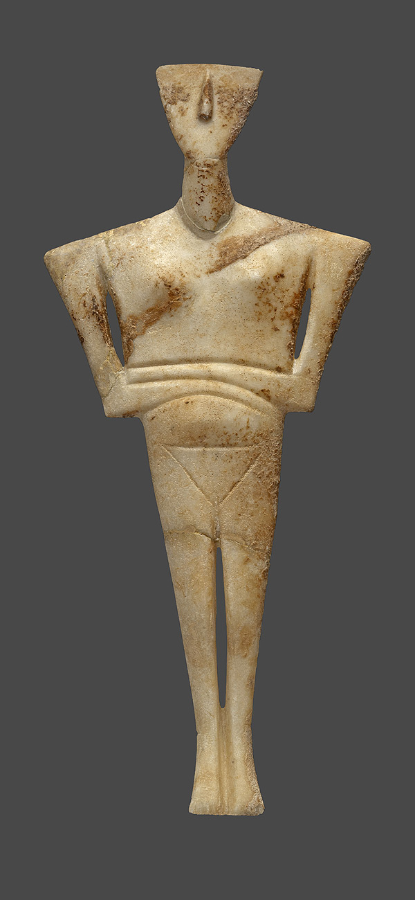 Ξεχωριστή θέση στην έκθεση της Τήνου καταλαμβάνει η ενότητα με τα κυκλαδικά ειδώλια, που αποτέλεσαν πηγή έμπνευσης για σπουδαίους σύγχρονους καλλιτέχνες. Στην πλειονότητά τους απεικονίζουν γυμνές γυναικείες μορφές με διπλωμένα χέρια και ελαφρώς λυγισμένα γόνατα. Ο επισκέπτης θα έχει τη δυνατότητα να θαυμάσει το μεγάλου μεγέθους ειδώλιο εγκυμονούσας γυναίκας αλλά και ένα βιολόσχημο, που συνιστά προγενέστερο τύπο των κυκλαδικών ειδωλίων με διπλωμένα χέρια.