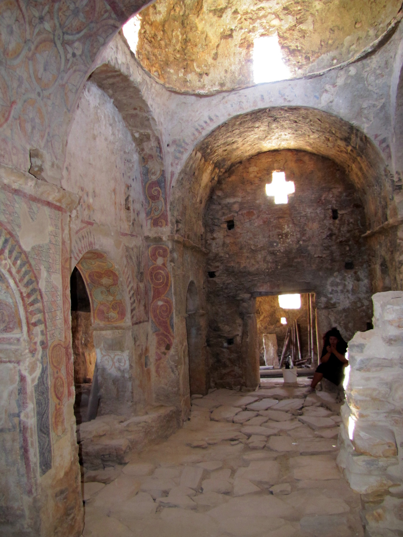 Ο ναός της Αγίας Κυριακής στην Απείρανθο Νάξου διατηρεί ένα μοναδικό σύνολο ανεικονικών τοιχογραφιών του 8ου αιώνα, ένα από τα ελάχιστα σωζόμενα κατάλοιπα της εικονομαχικής περιόδου στην Βυζαντινή Αυτοκρατορία. Μετά την συντήρηση αποκαλύφθηκαν φυτικά και γεωμετρικά μοτίβα με έντονα χρώματα, αλληγορικές παραστάσεις πτηνών και πολλαπλές απεικονίσεις διάλιθων σταυρών κοσμούν τους τοίχους της εκκλησίας, προσφέροντας στον επισκέπτη μια ασυνήθιστη και εντυπωσιακή εικόνα για βυζαντινό ναό.