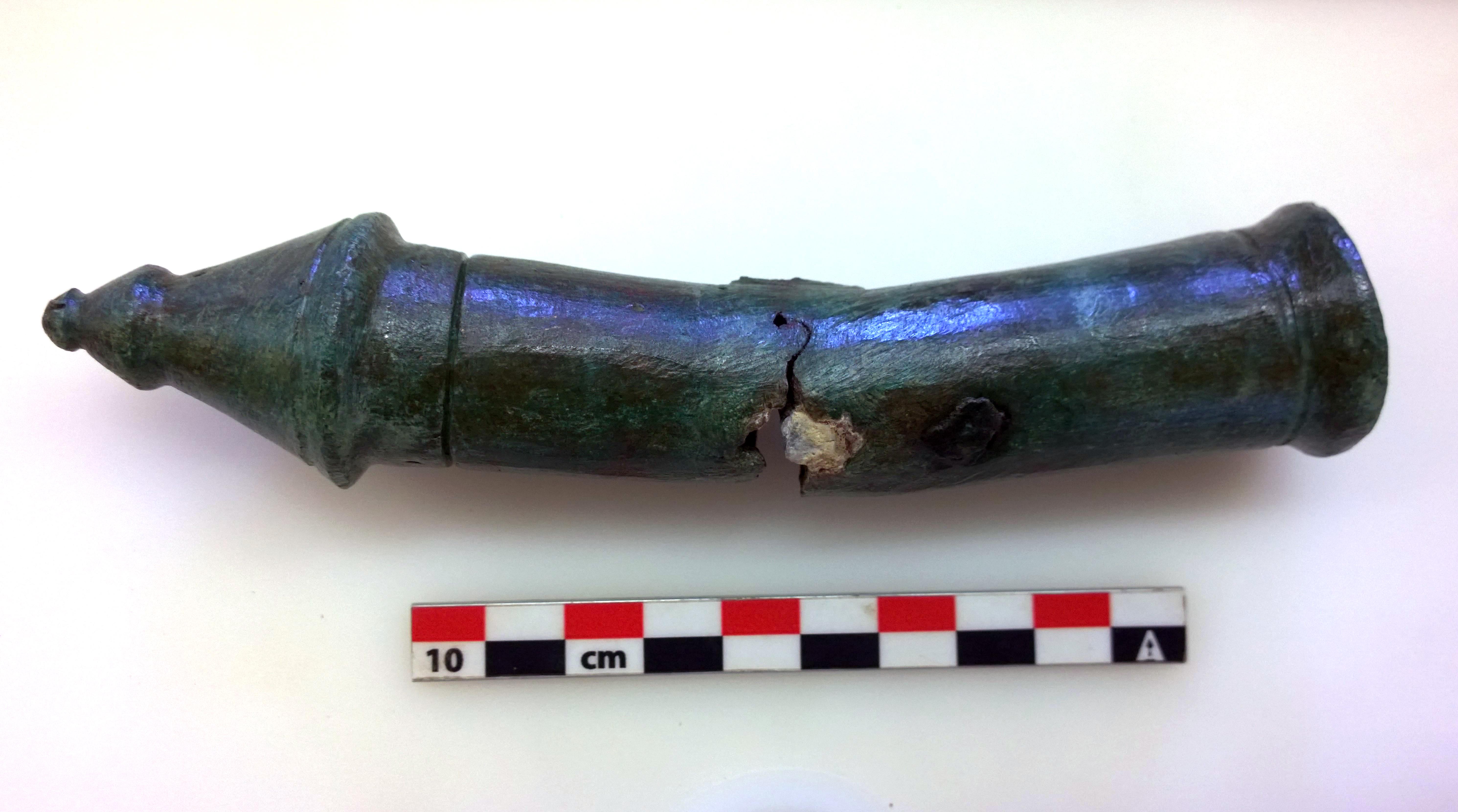 2) Ομοίωμα χάλκινης φαρέτρας που αποτελεί τμήμα αγαλματιδίου της Αρτέμιδος.
