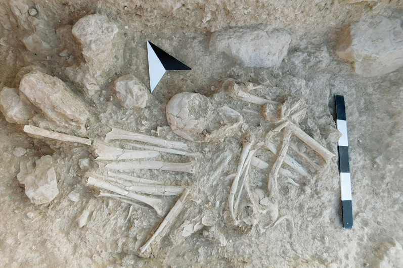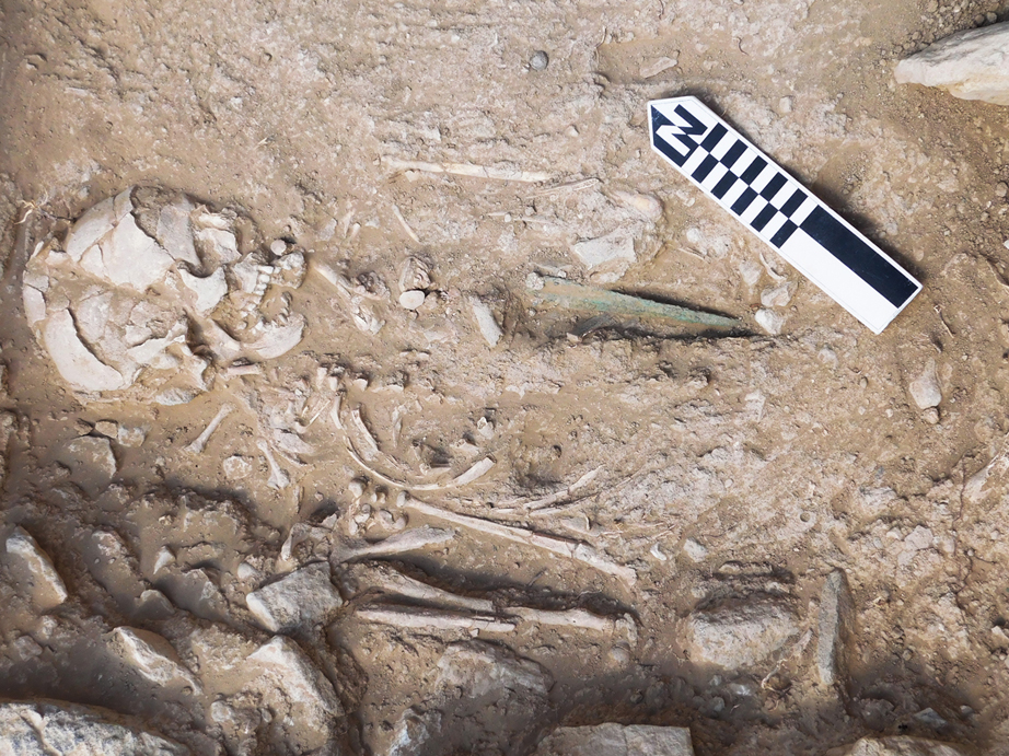5. Μεσομινωική ΙΑ πρωτογενής ανδρική ταφή σε λάκκο με χάλκινο εγχειρίδιο (κάτω από το Ταφικό Κτίριο 2).
