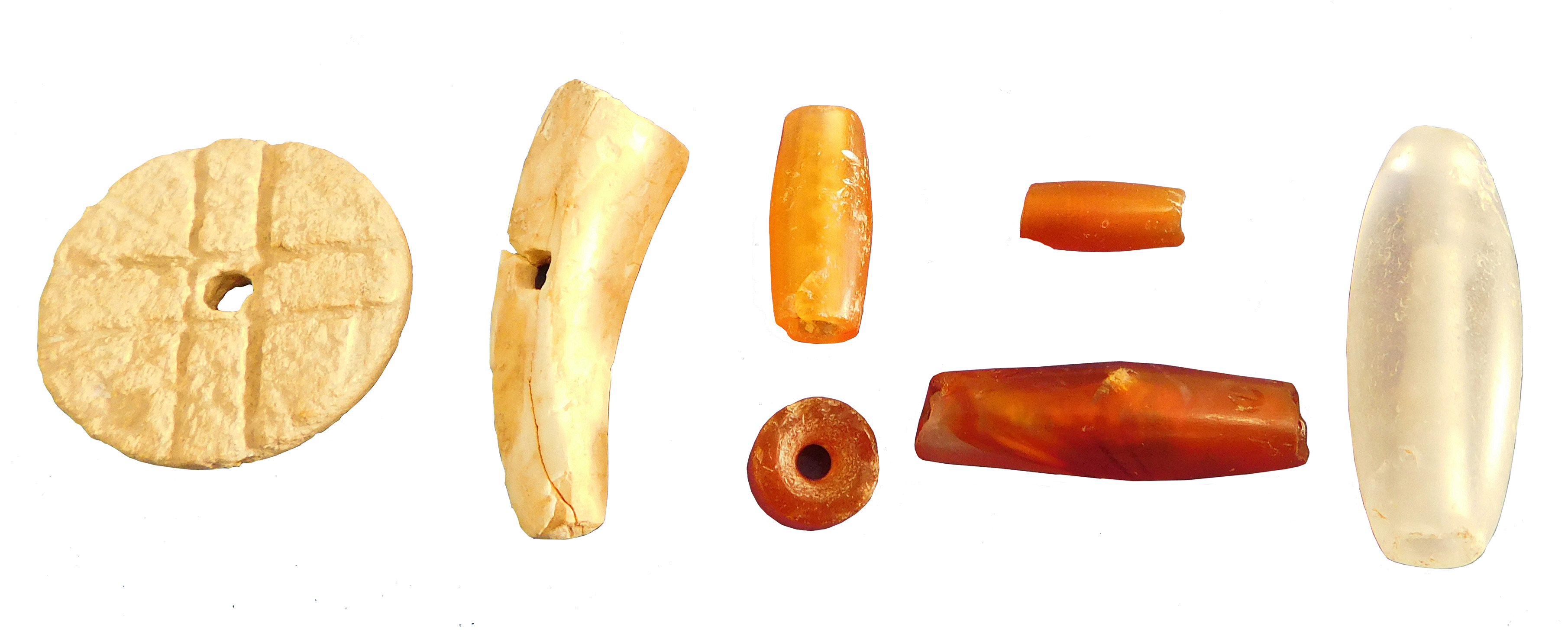 7. Μεσομινωικές ΙΑ χάνδρες διαφόρων τύπων από ελεφαντόδοντο, καρνελίνη και ορεία κρύσταλλο.