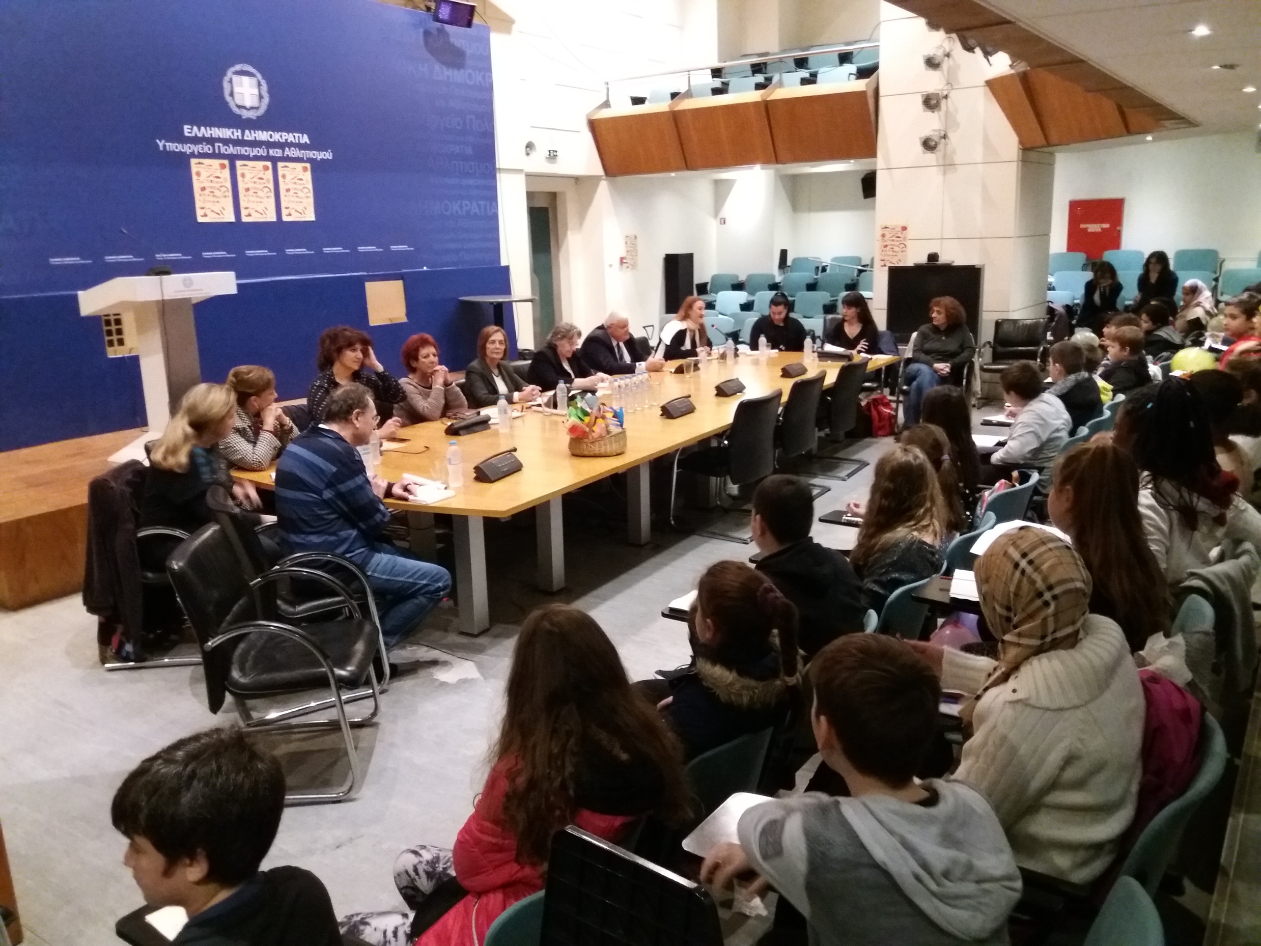 Παιδιά από επτά έως δώδεκα ετών διαφορετικής ιθαγένειας, άφησαν για λίγες ώρες τα σχολικά θρανία και έγιναν πολίτες, μεταφέροντας τους προβληματισμούς τους στην Υπουργό και τους προσκεκλημένους, που αφορούσαν θέματα ισότητας, κοινωνικών διακρίσεων και μεταχείρισης, νέων τεχνολογιών και πολιτισμού, εκφράζοντας την καθολική ανάγκη τους να έχουν μεγαλύτερη πρόσβαση στη δημιουργία και έκφραση μέσω της τέχνης.