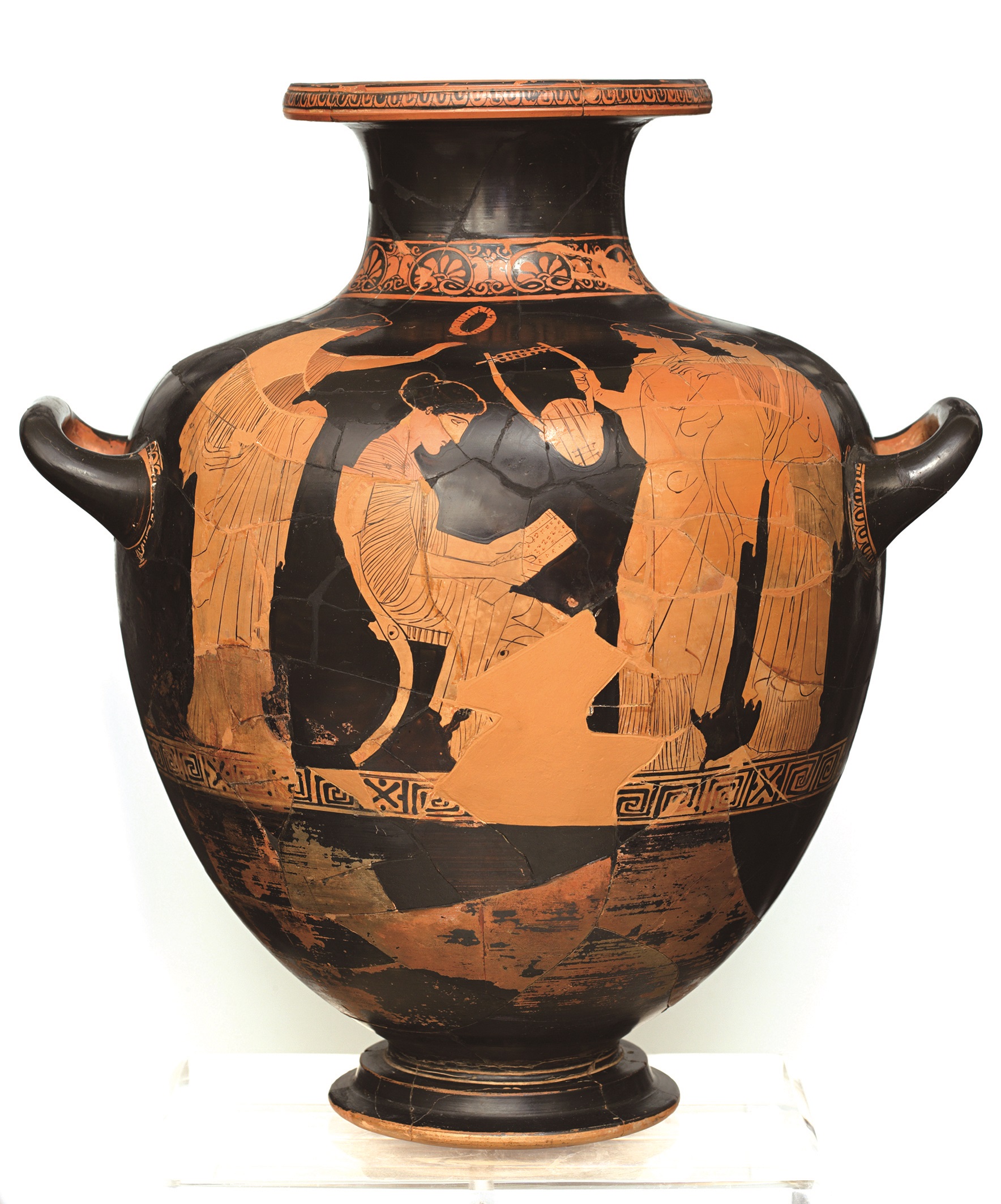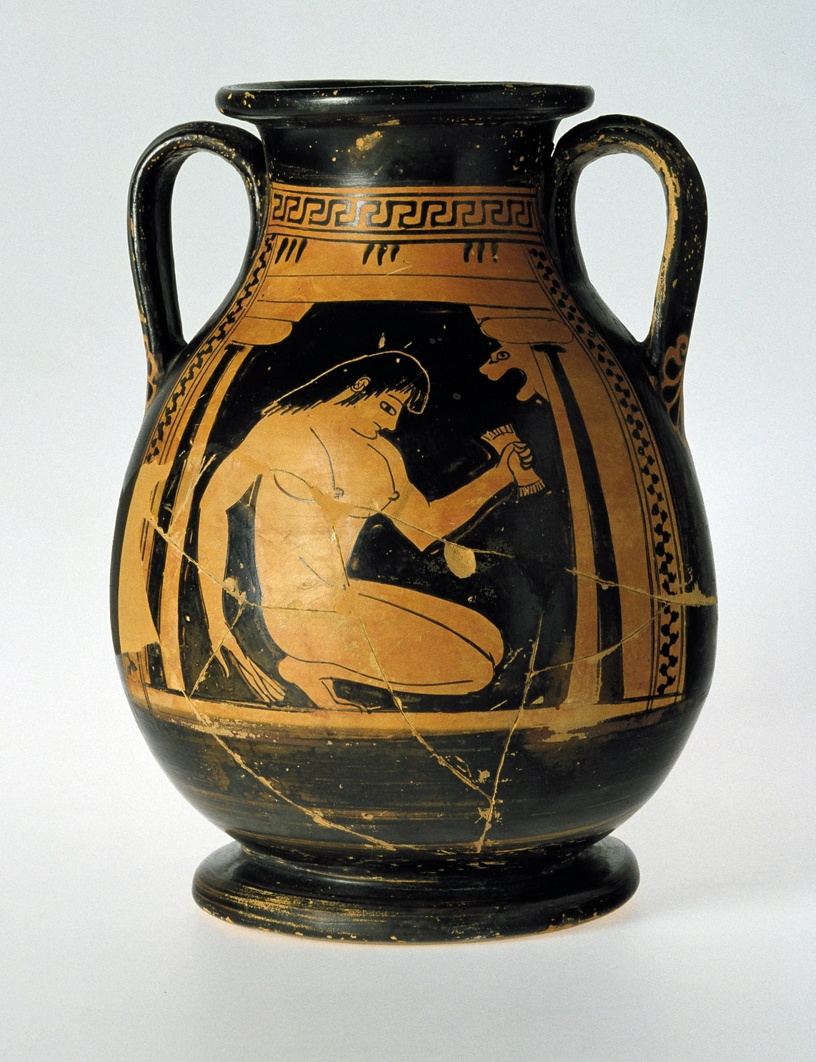 Εικ. 2. Αττική ερυθρόμορφη πελίκη με παράσταση γυμνής γυναίκας (εταίρας) στο λουτρό. Από την Αίγινα. Γύρω στο 650-500 π.Χ. (© Εθνικό Αρχαιολογικό Μουσείο/ TAΠΑ).