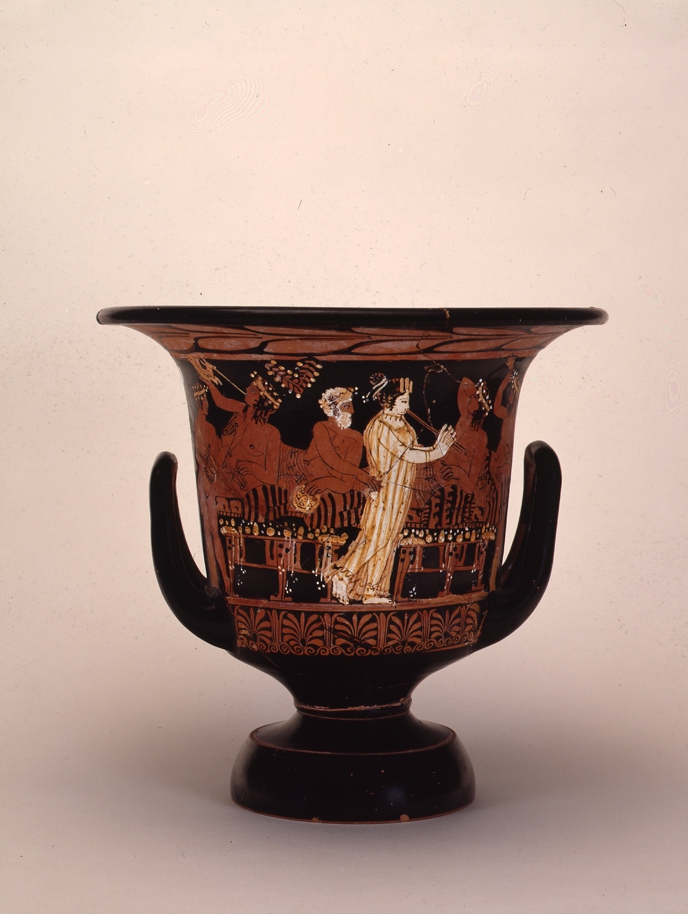 Εικ. 4. Αττικός ερυθρόμορφος καλυκωτός κρατήρας. Α. Συμπόσιο. Β. Τρεις νέοι. Άγνωστη προέλευση. Του Ζωγράφου της Uppsala. 400-375 π.Χ. (© Εθνικό Αρχαιολογικό Μουσείο/ TAΠΑ).
