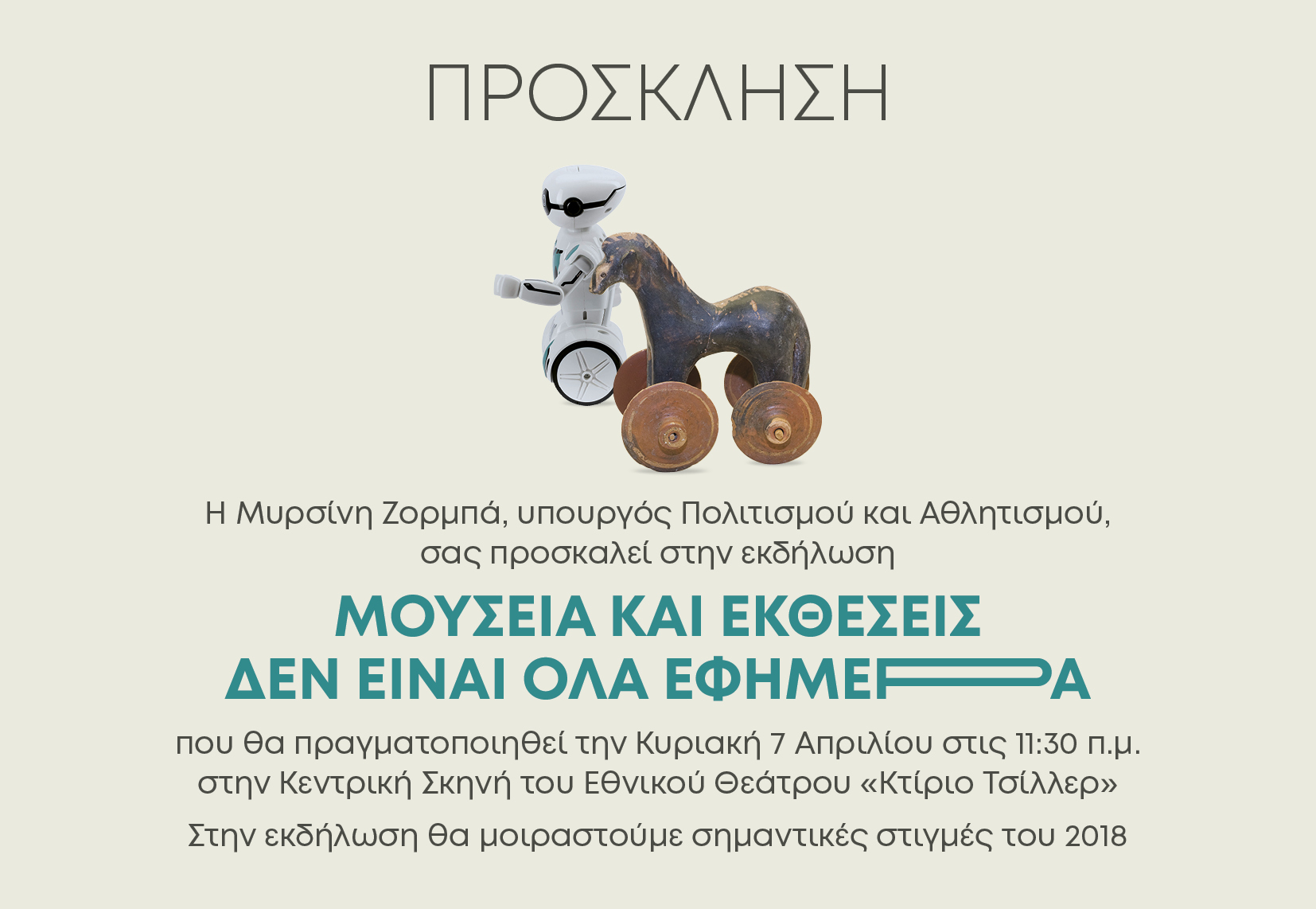 Στο πνεύμα μιας γιορτής για τον πολιτισμό, αφιερωμένης στα Μουσεία και τις Εκθέσεις είναι και η εκδήλωση την Κυριακή 7 Απριλίου 2019, στις 11:30, στο Εθνικό Θέατρο (κτίριο Τσίλλερ), για να ξαναζωντανέψουμε κορυφαίες στιγμές του 2018.