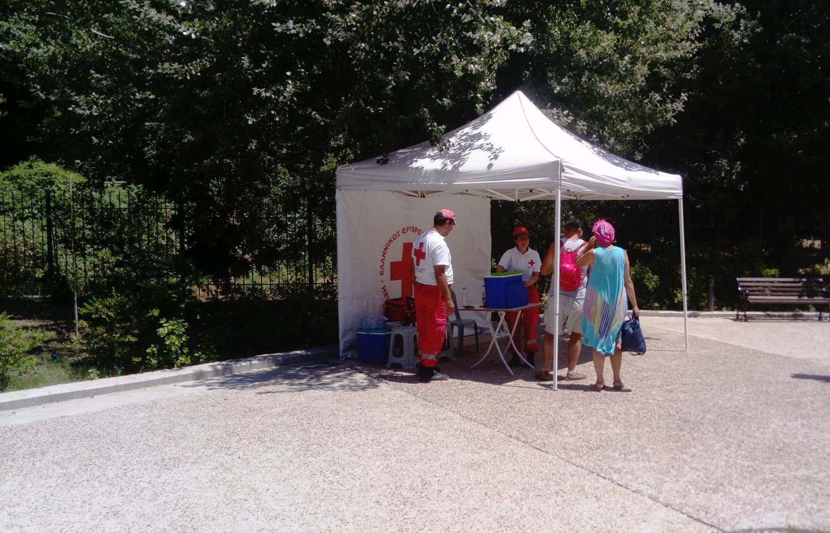 Ο πρόεδρος του Ερυθρού Σταυρού κ. Αντώνιος Αυγερινός ανταποκρινόμενος στο αίτημα της υπουργού Πολιτισμού Λ. Μενδώνη έστειλε αμέσως εθελοντές, που μοιράζουν εμφιαλωμένο νερό στους επισκέπτες. Η υπουργός ευχαριστεί θερμά τον κ. Αυγερινό για την προθυμία και την ταχύτητα με την οποία συνέβαλε στην προσωρινή λύση του προβλήματος. Η προσπάθεια, για την επίλυση ανάλογων προβλημάτων σε όλους τους αρχαιολογικούς χώρους, έχει ήδη ξεκινήσει.