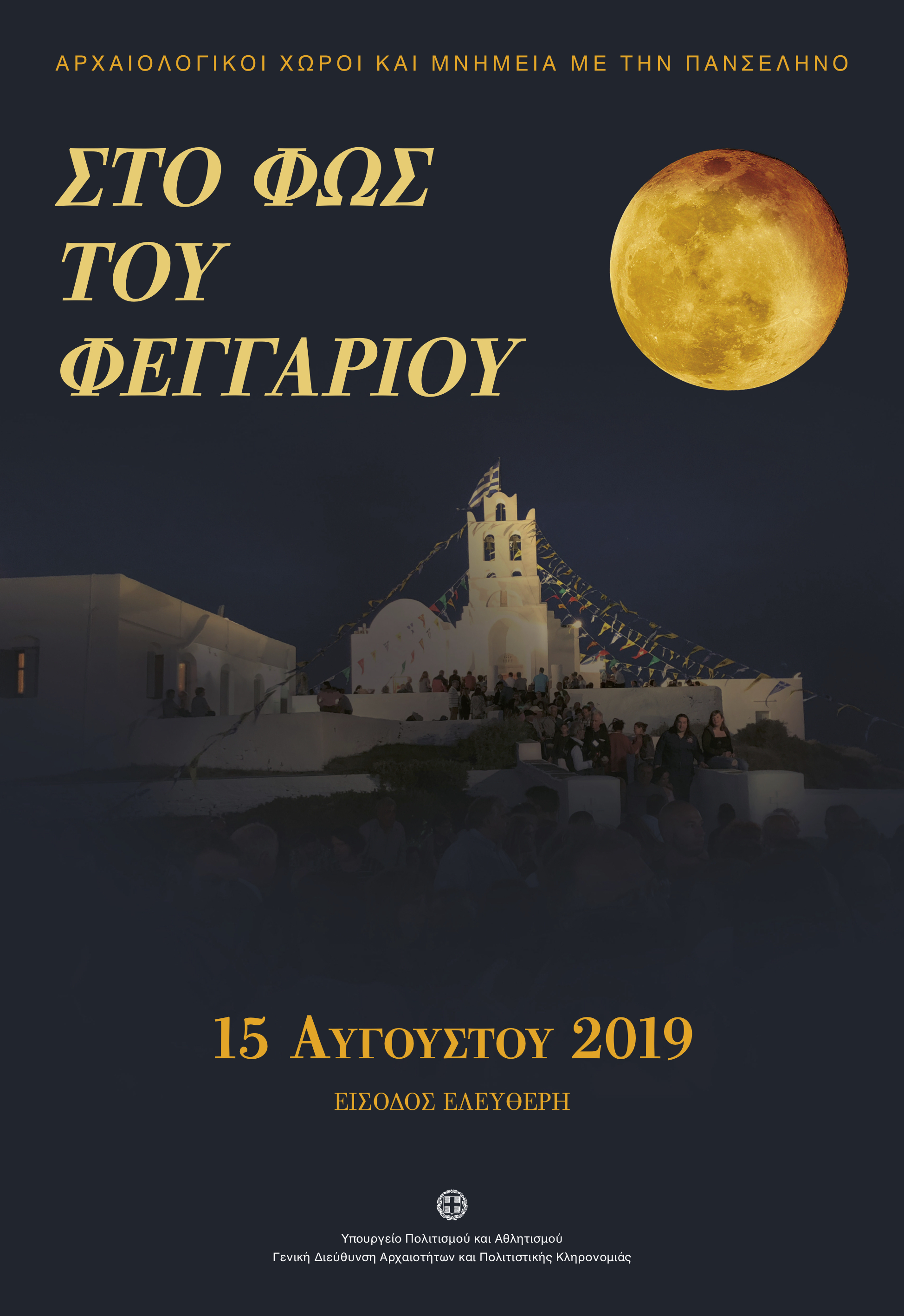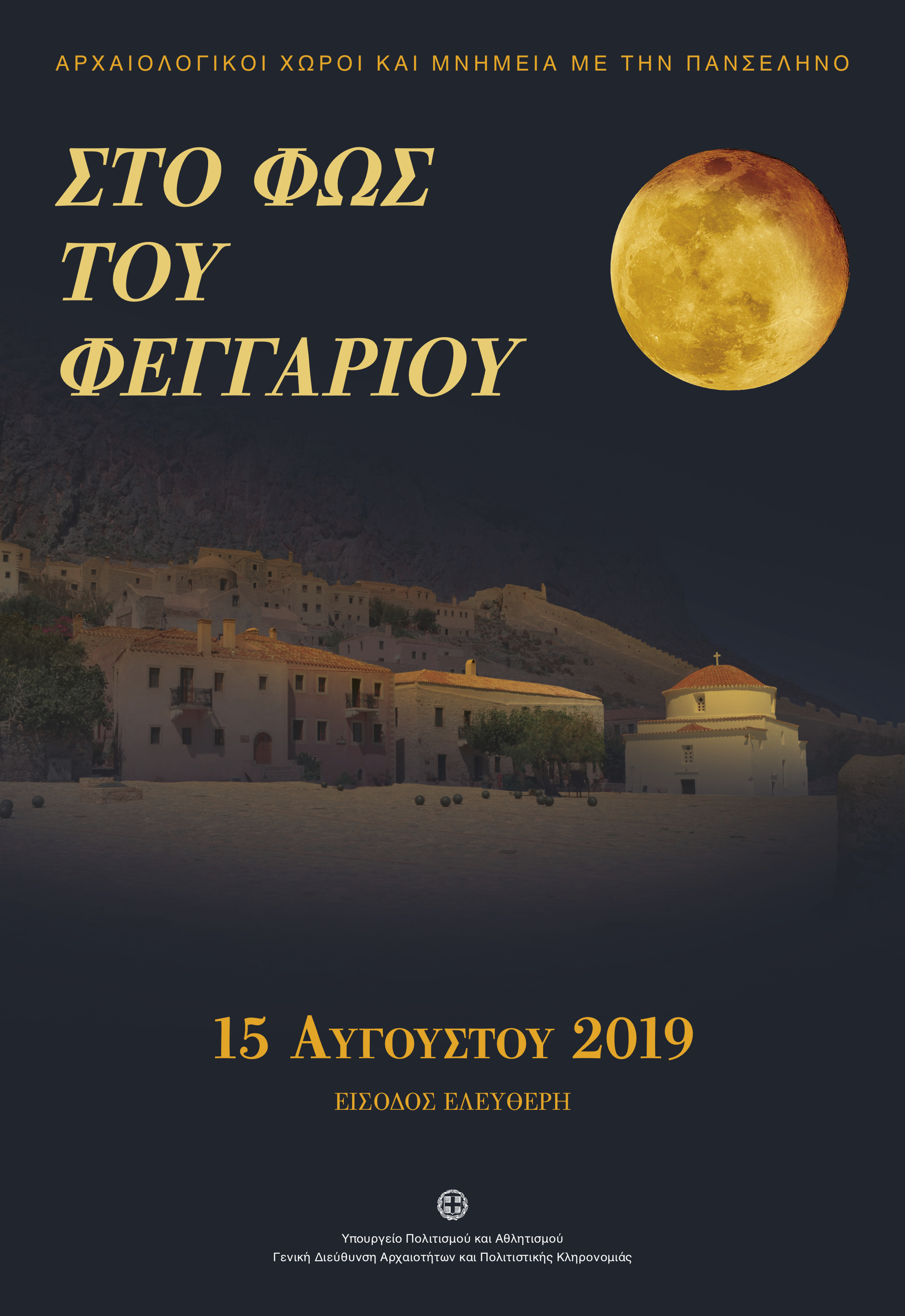 Το Υπουργείο Πολιτισμού και Αθλητισμού διοργανώνει συστηματικά από το 1999 τις εκδηλώσεις της Αυγουστιάτικης πανσελήνου, προσκαλώντας χιλιάδες Έλληνες και ξένους επισκέπτες, να παρακολουθήσουν ποιοτικές εκδηλώσεις και να θαυμάσουν τους αρχαιολογικούς χώρους, κάτω από το φως του φεγγαριού.
