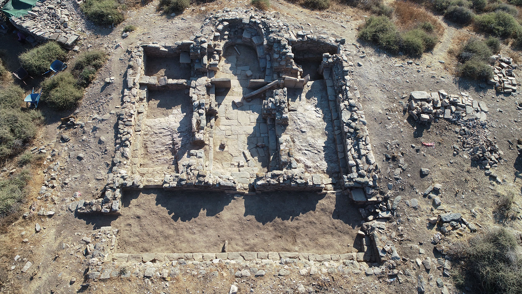 Σε ψηλότερο άνδηρο, αλλά αξονικά με την είσοδο της πρωτοβυζαντινής οχύρωσης, ολοκληρώθηκε φέτος η ανασκαφή του εσωτερικού της τρίκλιτης παλαιοχριστιανικής βασιλικής (εικ. 9-10). Από την σχεδόν τετράγωνη κάτοψη εξέχει ανατολικά η αψίδα του ιερού. Οι εξωτερικές είσοδοι ανοίγονται στους πλάγιους τοίχους του νάρθηκα, αφού δυτικά το έδαφος ήταν υπερυψωμένο. Η ανισοσταθμία των δαπέδων των χώρων οφείλεται στην μορφολογία του εδάφους. Κάθε κλίτος επικοινωνούσε απ΄ ευθείας με τον νάρθηκα. Η εκκλησία διαθέτει προσκτίσματα προς βορρά και νότο, από τα οποία ερευνήθηκε το βόρειο, που είχε απ' ευθείας πρόσβαση στο εσωτερικό του ναού. Το μνημείο έχει σύνθετη οικοδομική ιστορία: διακρίνονται τρεις κύριες φάσεις. Από αυτές, σημειώνεται εκείνη όπου ο διαχωρισμός των κλιτών γίνεται με εναλλασσόμενους πεσσούς και κίονες, καθώς και η τελευταία όπου τα μετακιόνια σφραγίζονται αφήνοντας μικρές διόδους μεταξύ των κλιτών. Στην θέση του διατηρείται το φράγμα του πρεσβυτερίου, αλλά και τμήματα του αρχιτεκτονικού διακόσμου (εικ. 19-11, 13, 15).