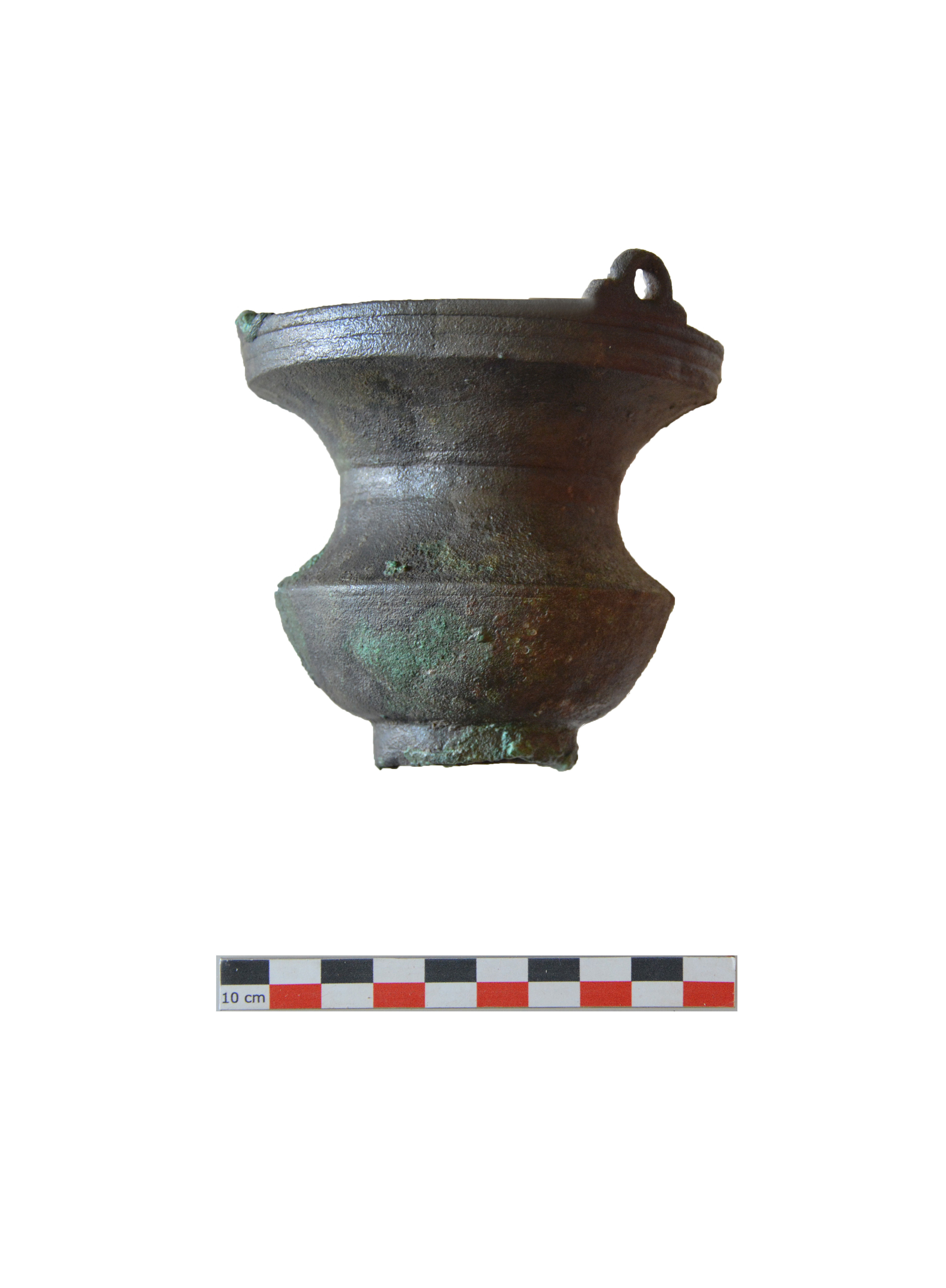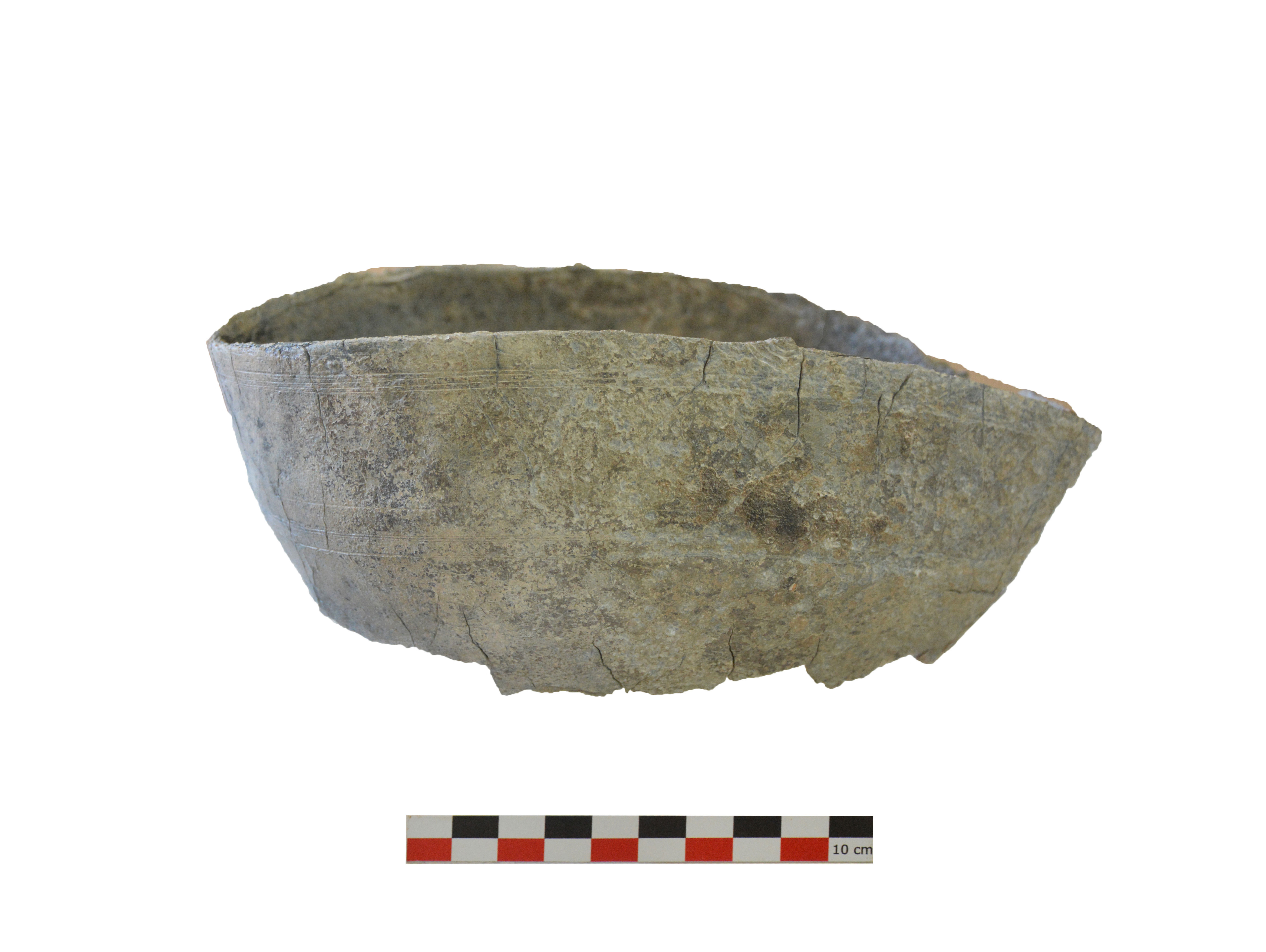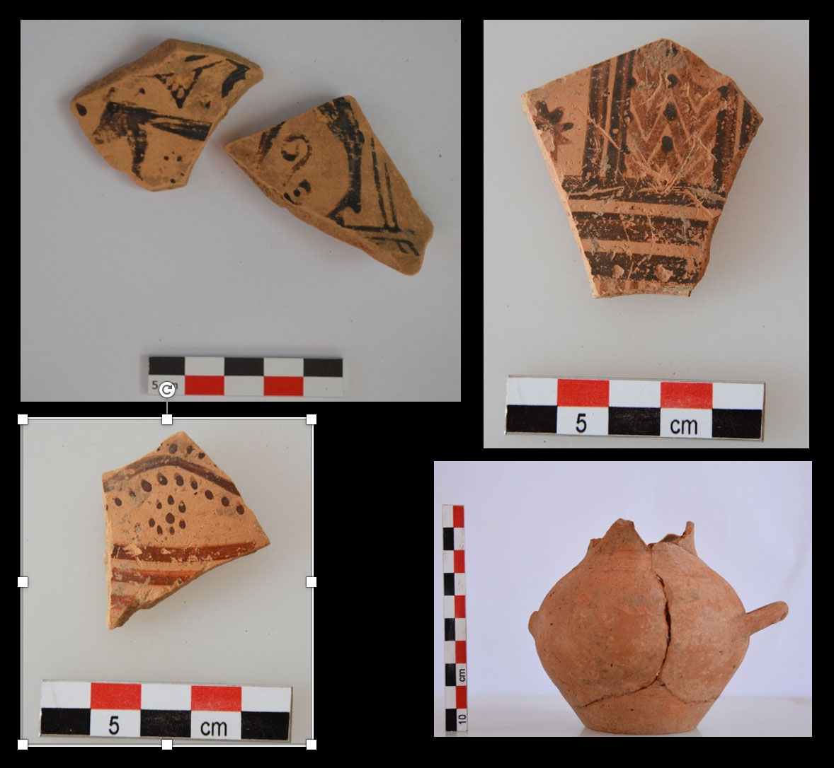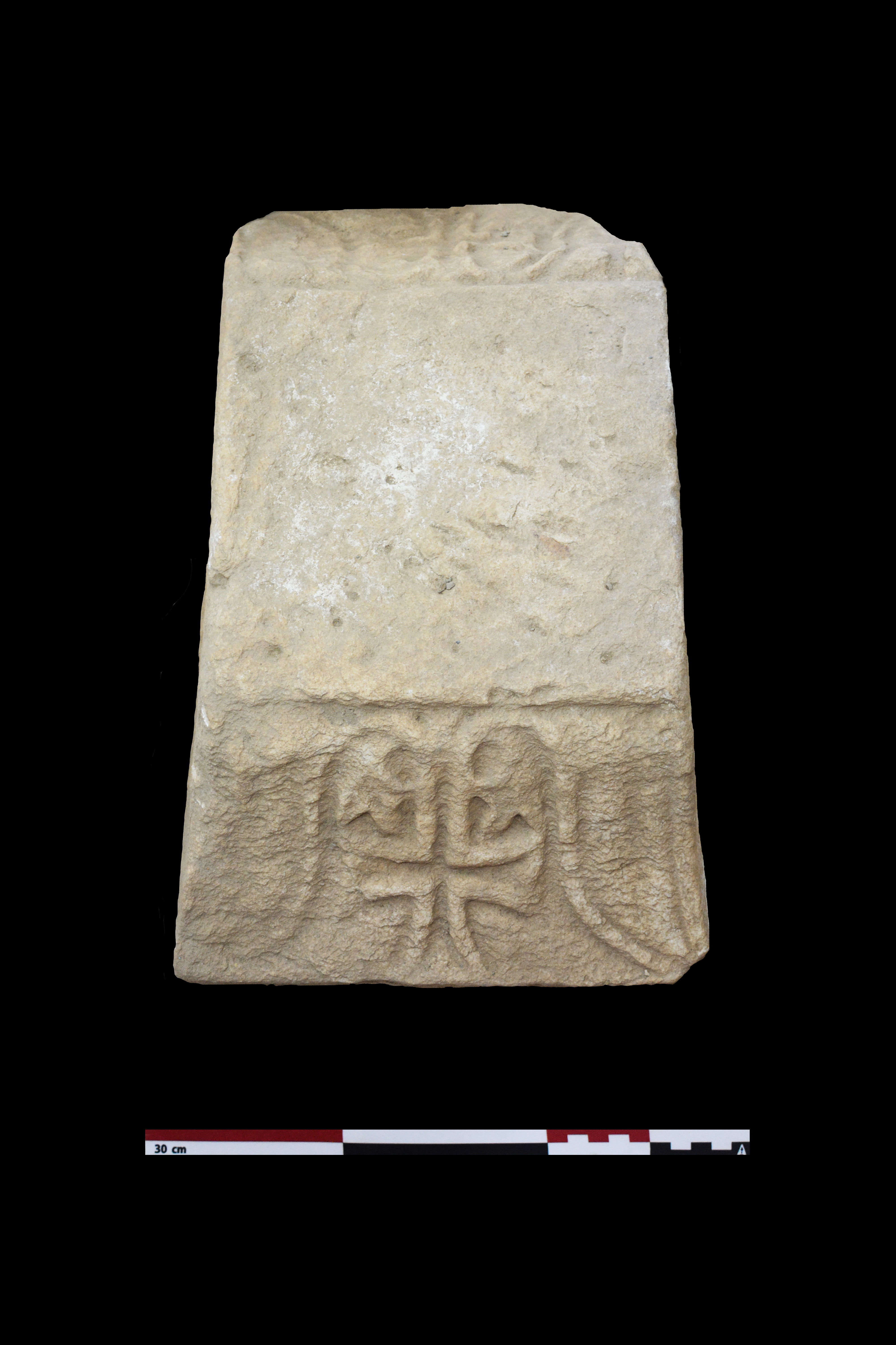 Κάτω από το διαταραγμένο δάπεδο της αψίδας ήλθε στο φως στρώμα θραυσμένων πρωτοβυζαντινών αγγείων (εικ. 15, 21): κοντόχοντρες χύτρες με καρινωτό περίγραμμα που προκαταρκτικά χρονολογούνται μάλλον στον 5ο αι., χωνοειδές στόμιο σφαιρικού αμφορέα τύπου Late Roman Amphora 2, αλλά κυρίως πληθώρα θραυσμάτων από το σώμα κυλινδρικών αμφορέων τύπου Late Roman Amphora 1 με αυλακωτή διακόσμηση που χρονολογούνται κυρίως στον 6ο αιώνα και ως τις αρχές του 7ου , και φαίνεται να οριοθετούν το terminus ante quem της οικοδόμησης της βασιλικής. Κάτω από το στρώμα αυτό και στον διαμήκη άξονα του ναού, αποκαλύφθηκε μικρό ορθογωνικό λάξευμα στον φυσικό βράχο με την μορφή θήκης με καλυπτήρια πλάκα (εικ. 15, 21-22). Πρόκειται προφανώς για το εγκαίνιο του ναού, αφού στο εσωτερικό του αποκαλύφθηκε μολύβδινο σωληνωτό αντικείμενο με περιεχόμενο που τώρα ερευνάται. Η βασιλική βρίσκεται εν λειτουργία τουλάχιστον έως τον 7ο αιώνα, χωρίς να μπορεί να αποκλειστεί και οψιμότερη χρήση της.