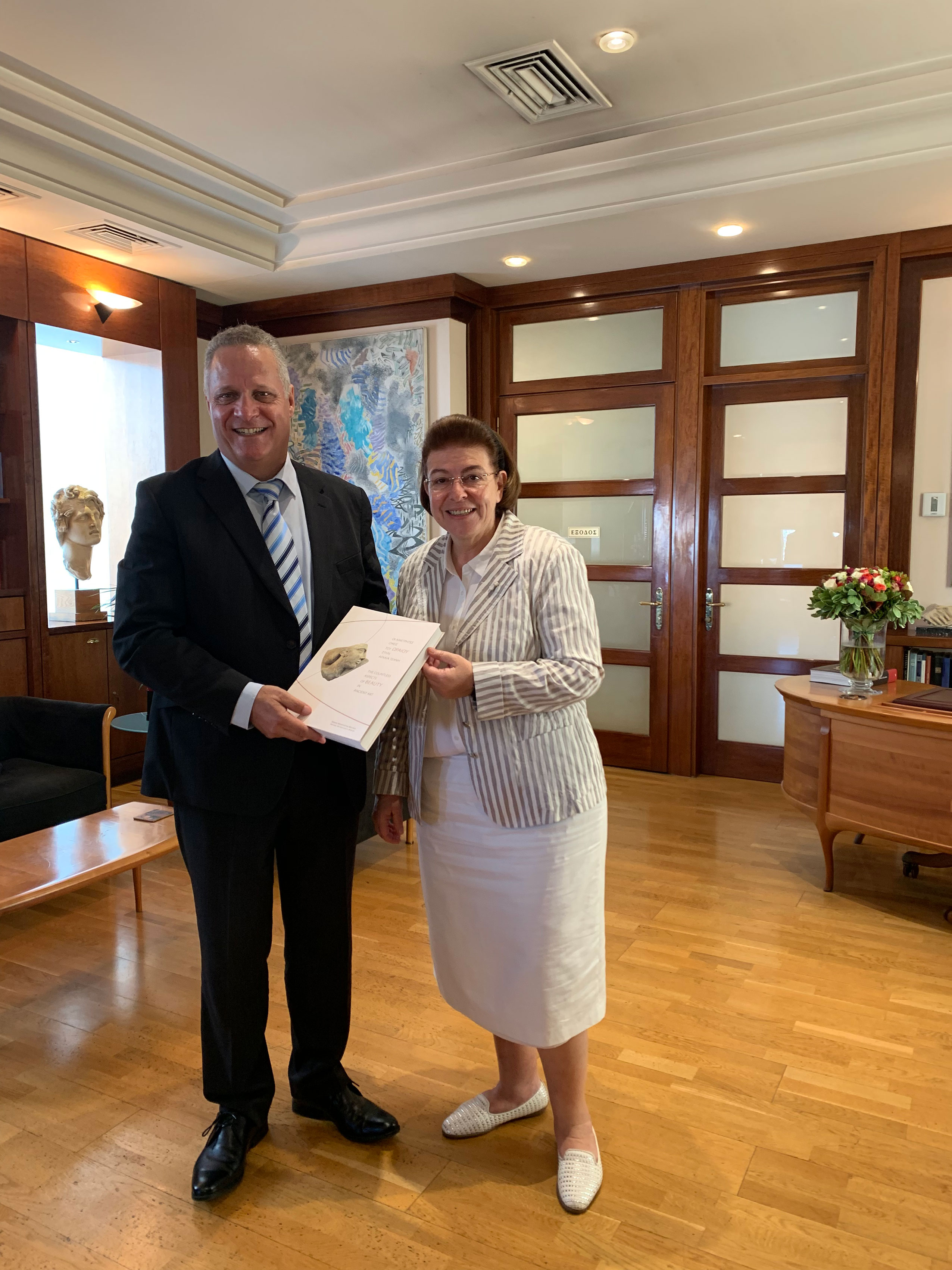 Μια πολύ εποικοδομητική συνάντηση είχαν το Σάββατο, 12 Οκτωβρίου 2019, η Υπουργός Πολιτισμού και Αθλητισμού, κ. Λίνα Μενδώνη με τον Υπουργό Παιδείας και Πολιτισμού, κ. Κώστα Χαμπιαούρη. Οι δύο Υπουργοί συναντήθηκαν στο γραφείο της κ. Μενδώνη, στο Υπουργείο Πολιτισμού και Αθλητισμού, στην Αθήνα, παρουσία υπηρεσιακών παραγόντων. Κατά τη συνάντηση έγινε αναφορά στη, μέχρι τώρα, άριστη συνεργασία των Υπουργείων των δύο χωρών στον τομέα του Πολιτισμού. Επιβεβαιώθηκε η κοινή επιθυμία περαιτέρω ενδυνάμωσής της και συζητήθηκαν θέματα κοινού ενδιαφέροντος.