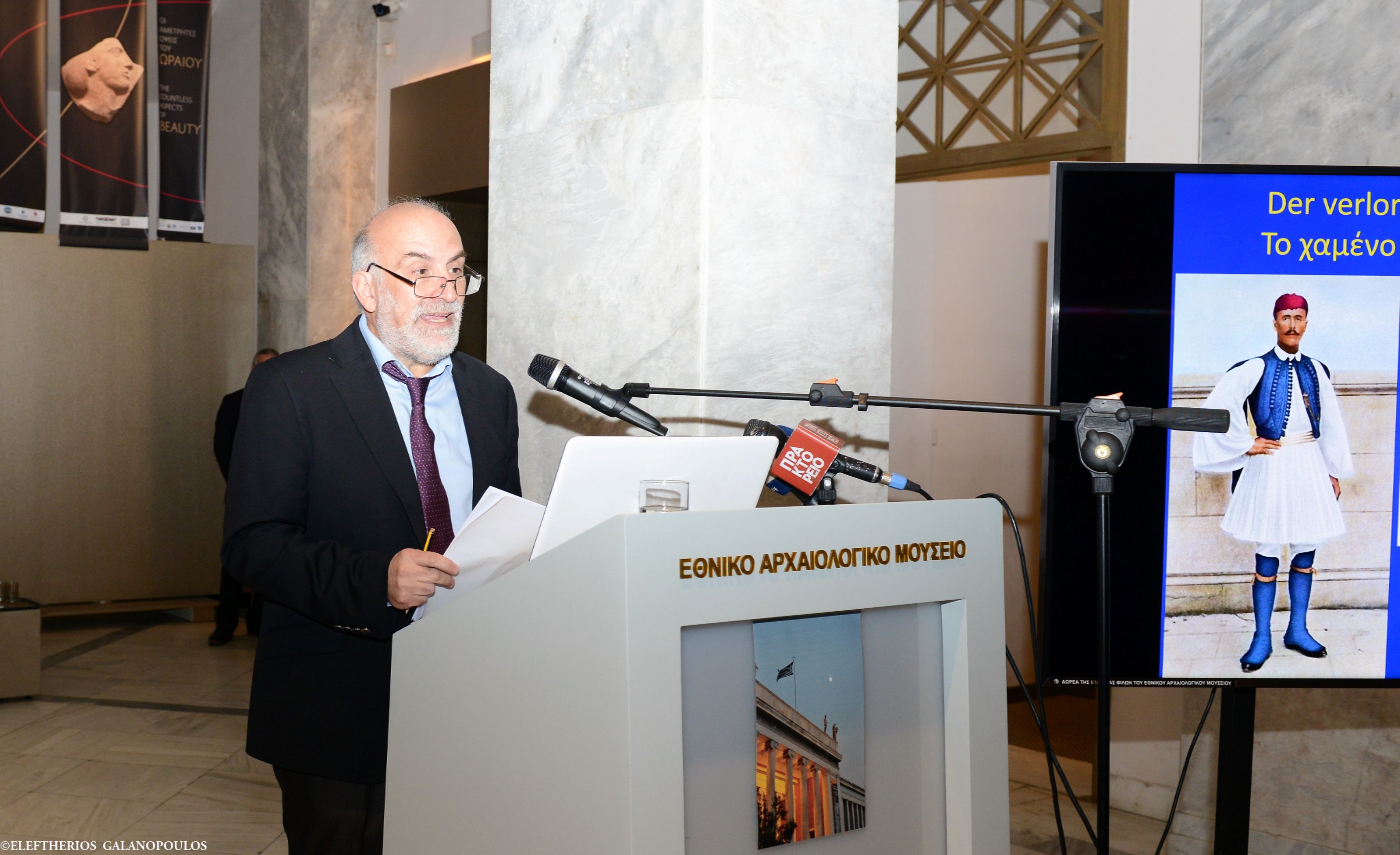 Θέλω επίσης να μεταφέρω τις ευχαριστίες του Γενικού Γραμματέα, της αρχαιολογικής κοινότητας, εμού προσωπικά και της ελληνικής Κυβέρνησης, στον Γιώργο Καββαδία. Χωρίς τον Γιώργο, χωρίς την επιστημοσύνη του, η οποία δεν αποδεικνύεται τώρα, έχει αποδειχθεί εδώ και πολλά χρόνια, εδώ και δεκαετίες, χωρίς την επιμονή του, δεν θα είχαμε σήμερα αυτή την μοναδική εμπειρία. Επίσης δεν θα είχαμε την εμπειρία αυτή, αν ο Νίκος Καλτσάς, την εποχή που είχε την ευθύνη της διεύθυνσης του Μουσείου, δεν ανέθετε στον Γιώργο να προβεί στη συγκεκριμένη έρευνα. Επομένως και τους δύο τους ευχαριστώ από καρδιάς και εκ μέρους όλων μας.