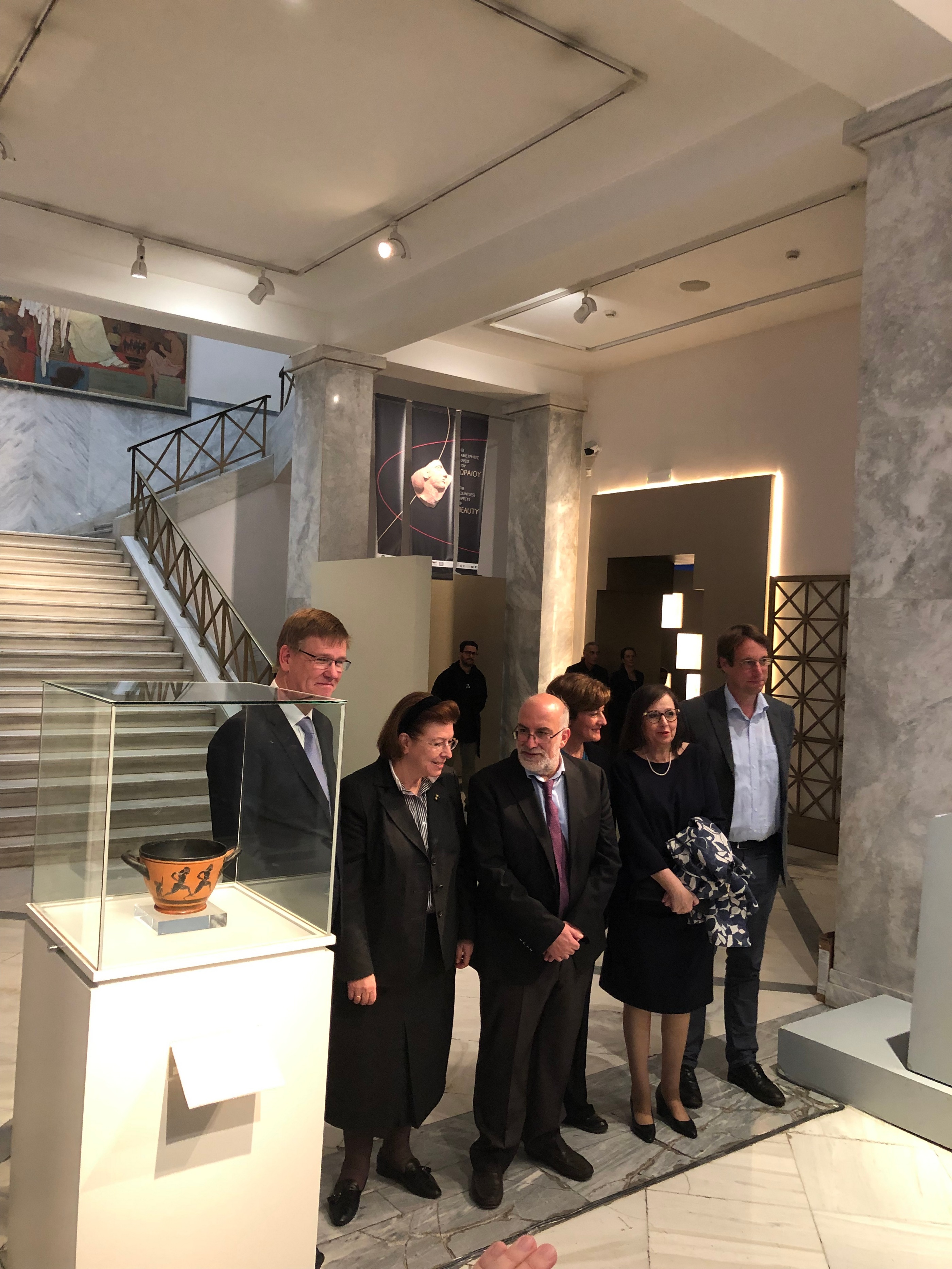 «Το 1896, είπε η διευθύντρια του Εθνικού Αρχαιολογικού Μουσείου κ. Μαρία Λαγογιάννη, εκφράστηκε η ελπίδα ότι η αναβίωση των Ολυμπιακών Αγώνων θα ενισχύσει «τους δεσμούς της αμοιβαίας αγάπης του Ελληνικού και των άλλων λαών». Σήμερα, η επιστροφή του αρχαίου σκύφου από την Πανεπιστημιακή Συλλογή του Münster δείχνει πού μπορεί να οδηγήσει ο διάλογος και ο αμοιβαίος σεβασμός των λαών. Ο πολιτισμός δημιουργεί γέφυρες που συνδέουν τους λαούς μας».
