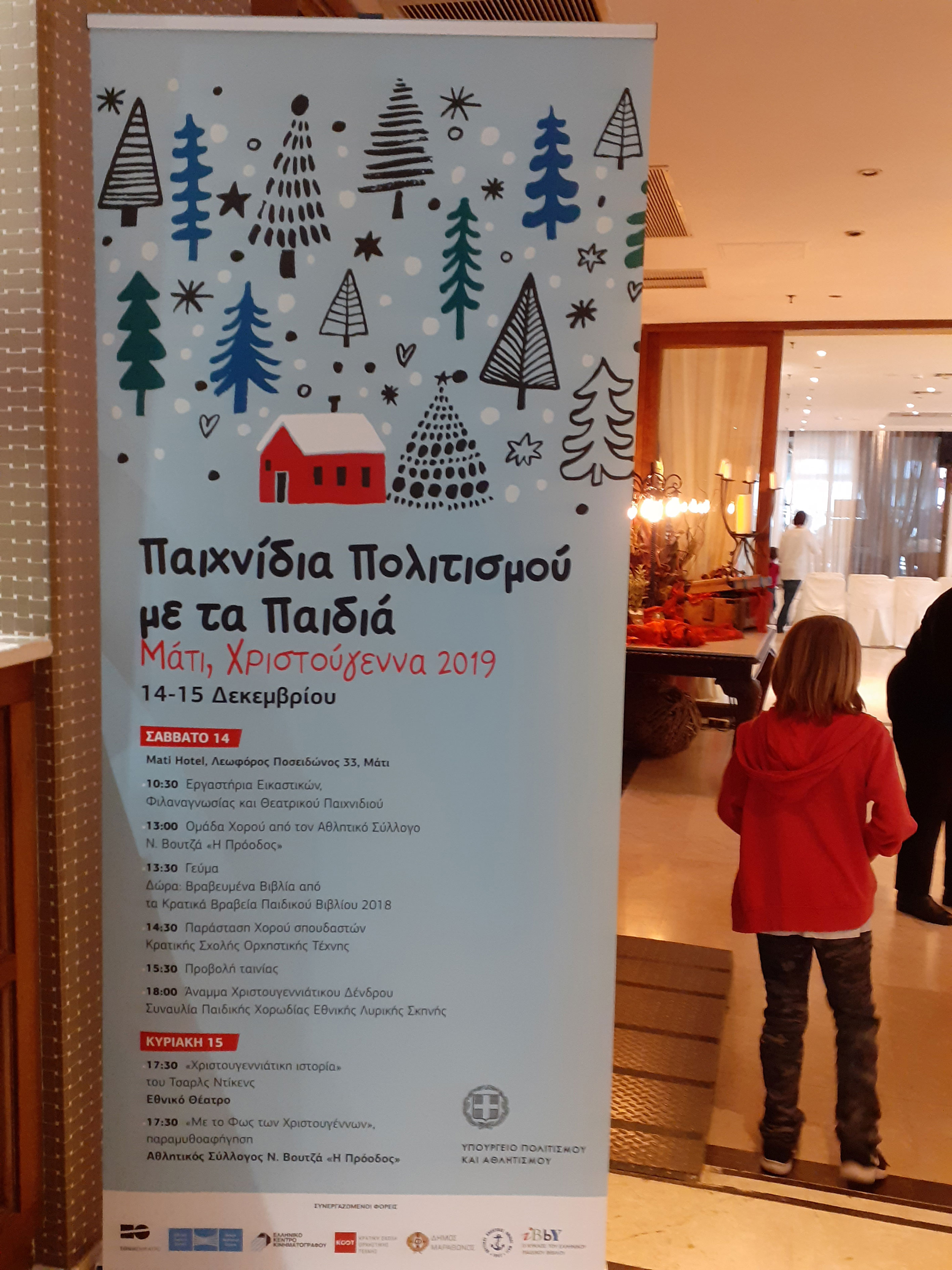 Με μαζική συμμετοχή παιδιών από το Μάτι πραγματοποιείται χθες και σήμερα το διήμερο χριστουγεννιάτικων εκδηλώσεων, που διοργανώνει το Υπουργείο Πολιτισμού και Αθλητισμού. Το ΥΠΠΟΑ σχεδίασε το πρόγραμμα εκδηλώσεων «Παιχνίδια πολιτισμού» για τα παιδιά των πυρόπληκτων οικογενειών της περιοχής. Συγκεκριμένα, στις εκδηλώσεις συμμετέχουν τα παιδιά της πέμπτης και έκτης δημοτικού Αγίας Μαρίνας, καθώς και μαθητές από το Λύρειο Παιδικό Ίδρυμα.