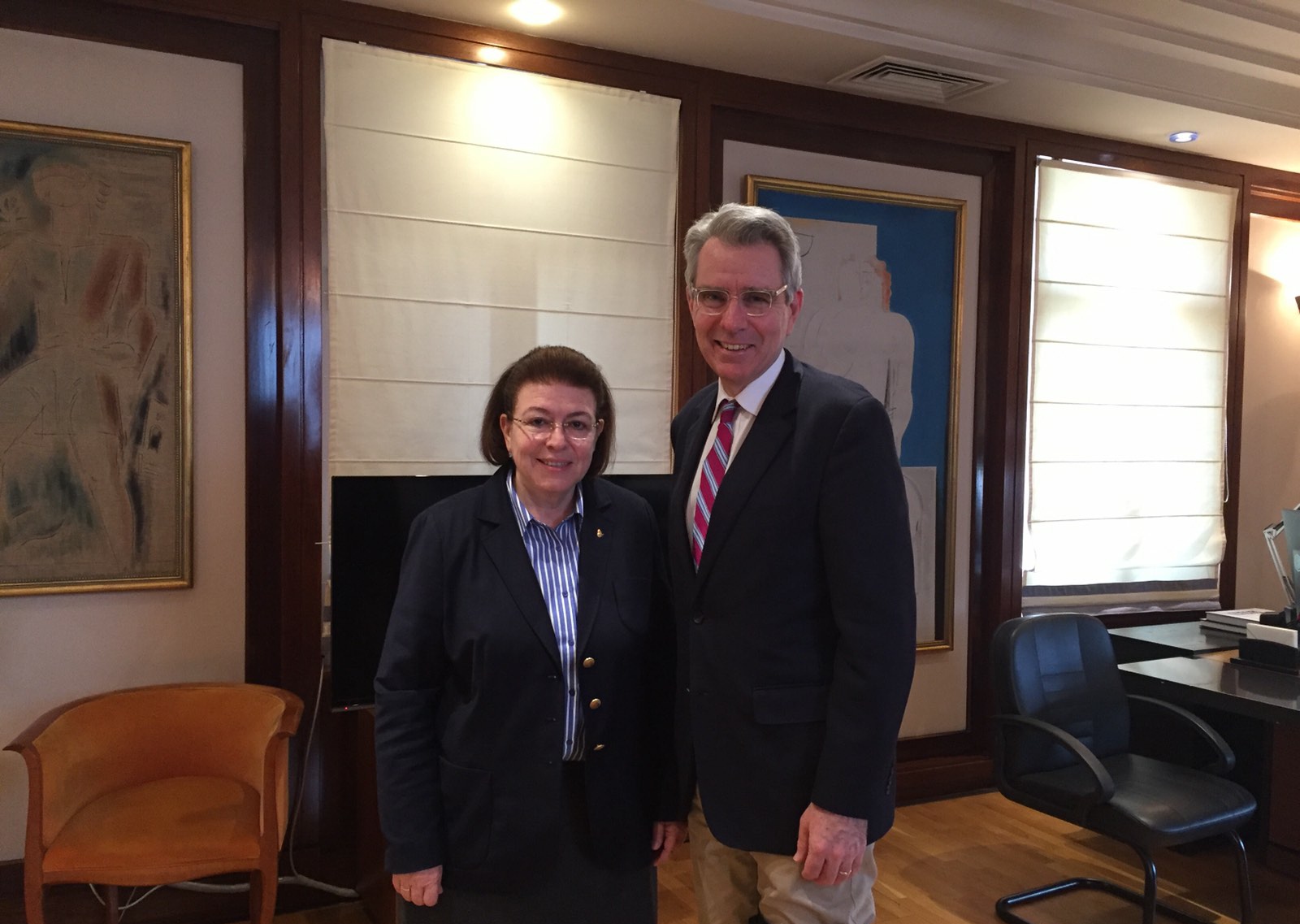 Χθες το απόγευμα συναντήθηκε η Υπουργός Πολιτισμού και Αθλητισμού κ. Λίνα Μενδώνη με τον πρέσβη των ΗΠΑ κ. Τζέφρι Πάιατ στο ΥΠΠΟΑ, προκειμένου να συζητηθούν τα θέματα που θα τεθούν στην επικείμενη συνάντηση της Υπουργού με την αρμόδια Υπουργό των ΗΠΑ για πολιτιστικά και εκπαιδευτικά ζητήματα κ. Μαρί Ρόϊς.