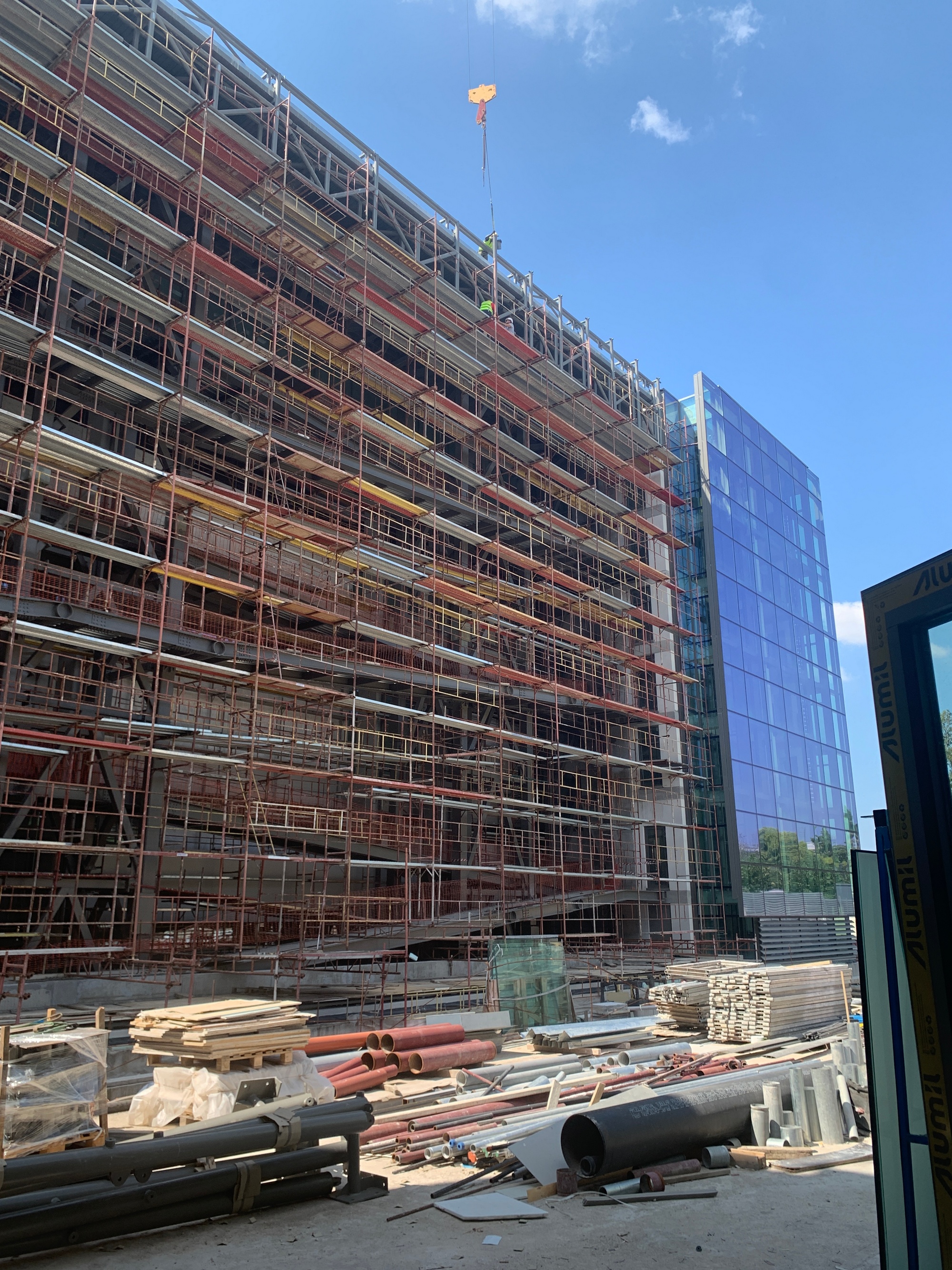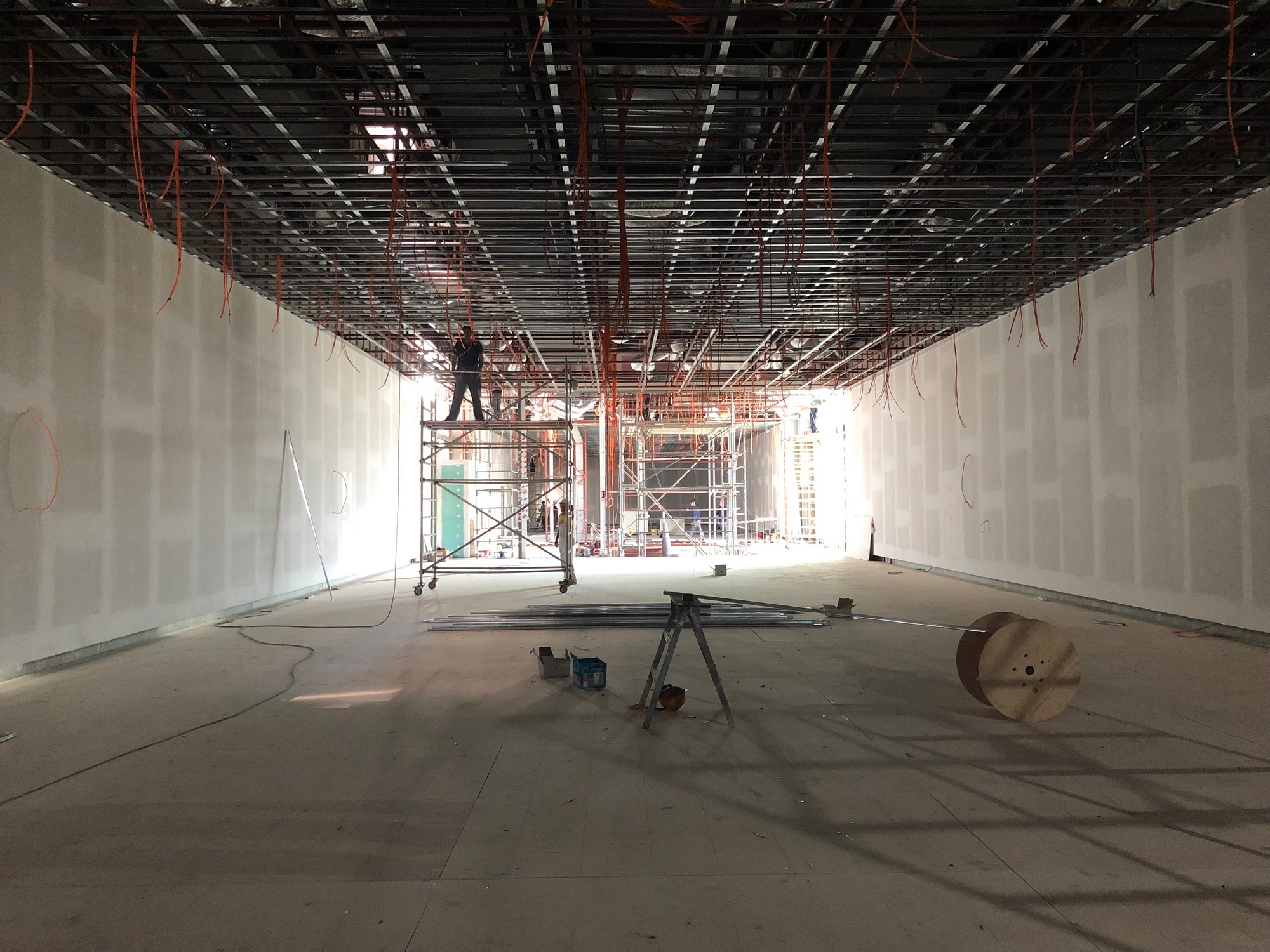 Στους εκθεσιακούς χώρους τοποθετούνται τα πατώματα, οι επενδύσεις στους τοίχους και οι ψευδοροφές, ενώ προχωρούν και οι εγκαταστάσεις στους χώρους υγιεινής. Σε εξέλιξη βρίσκεται και η κατασκευή του κεντρικού αμφιθεάτρου, το οποίο θα παραδοθεί ολοκληρωμένο τον προσεχή Οκτώβριο. Αντίστοιχο είναι και το χρονοδιάγραμμα που έχει τεθεί για την τοποθέτηση του «πλανάρ», του υαλοστασίου, που καλύπτει το κτήριο Β και επιτρέπει στους επισκέπτες να περπατούν στις ράμπες και συγχρόνως να απολαμβάνουν την θέα προς τον Λυκαβηττό. Την επόμενη εβδομάδα υπογράφεται η σύμβαση με την ανάδοχο εταιρεία για την διαμόρφωση του περιβάλλοντος χώρου, έργο, το οποίο εντάχθηκε στο ΠΕΠ Αττικής- ΕΣΠΑ 2014-2020, προϋπολογισμού 1.000.000 ευρώ. Παράλληλα, δρομολογείται ο διαγωνισμός, ώστε να προκηρυχθεί τον προσεχή Σεπτέμβριο για τα ψηφιακά προγράμματα της Πινακοθήκης, προϋπολογισμού 2.500.000 ευρώ από το εθνικό σκέλος του Προγράμματος Δημοσίων Επενδύσεων.