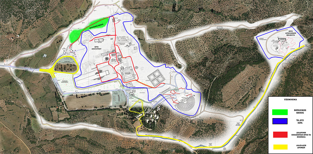 Το έργο αυτό αποτελεί μέρος ενός ευρύτερου προγράμματος, προϋπολογισμού 5.650.000 €, που είχε ενταχθεί στο ΕΣΠΑ ήδη από το 2014 και περιελάμβανε εκτός άλλων και την δημιουργία νέου κτιρίου έκθεσης κινητών ευρημάτων, τα οποία αναδεικνύουν με πληρότητα την εξέλιξη της αρχαίας ιατρικής ειδικά στο Ασκληπιείο, το κυριότερο θεραπευτικό κέντρο της αρχαιότητας, αλλά και γενικότερα.