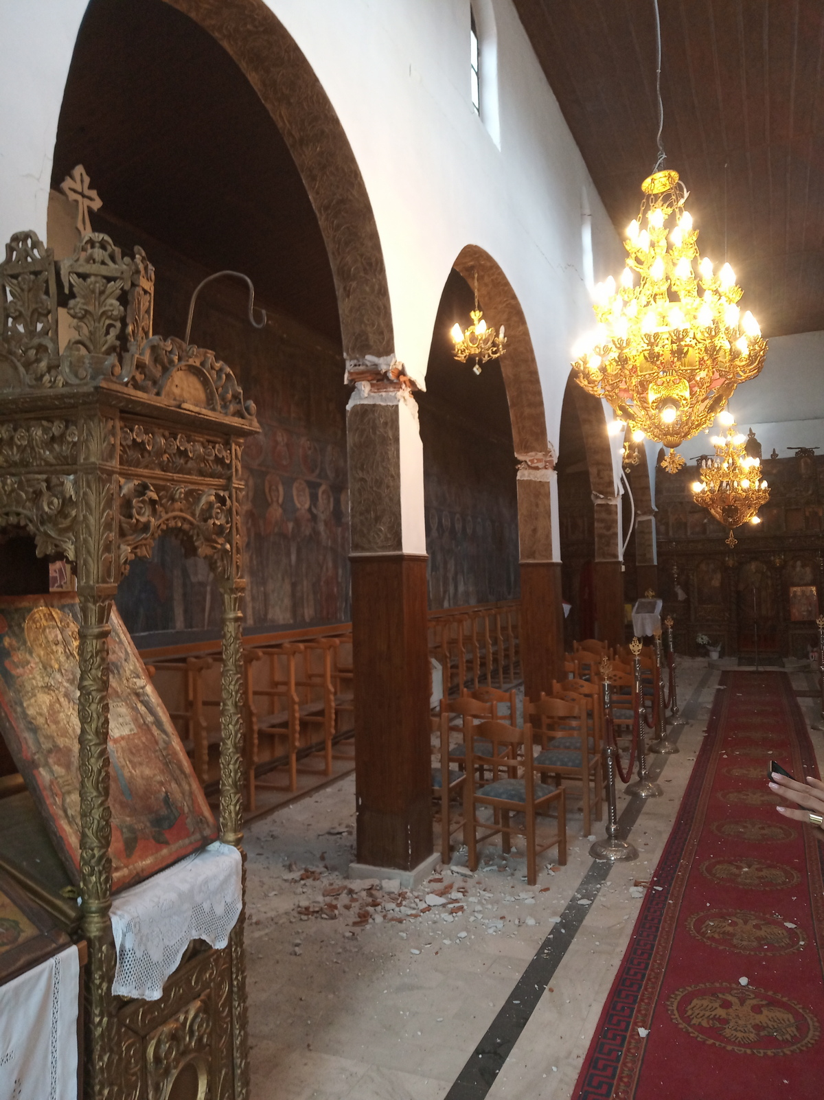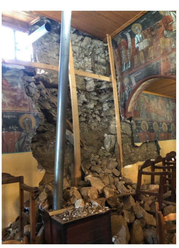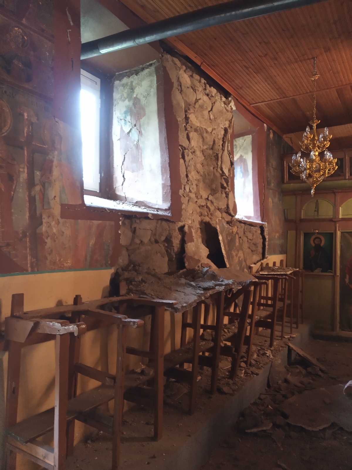 - Στο κτήριο του ναού της Αγίας Παρασκευής (19ος αιώνας) διαπιστώθηκε κλίση, ενώ εγκάρσιες και κάθετες ρωγμές είναι παντού εμφανείς. Τα κειμήλια μεταφέρθηκαν σε ασφαλές μέρος.