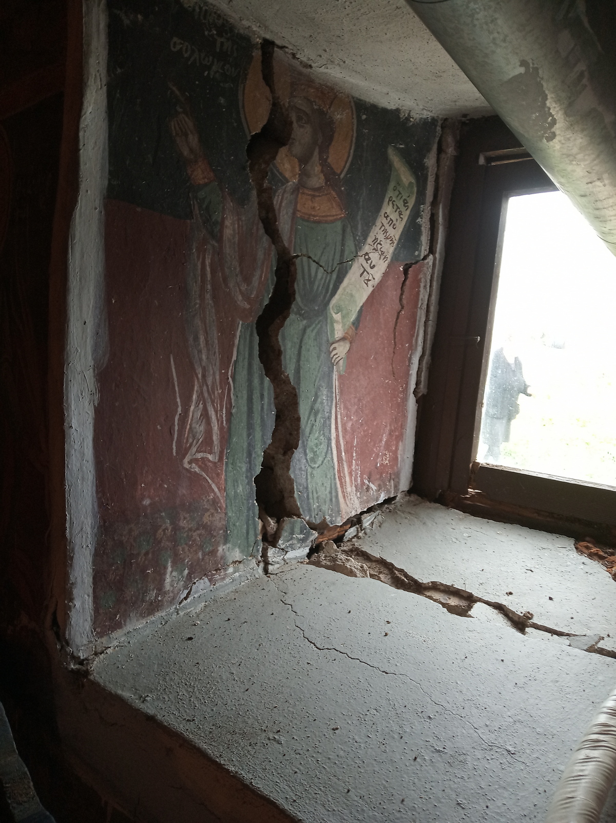 - Στη μονή του Προφήτη Ηλία αποκολλήθηκε ο βόρειος τοίχος από τη στέγη, ενώ παρατηρείται οριζόντιο σκίσιμο στο άνω μέρος του τρούλου. Ρωγμές υπάρχουν στις περισσότερες καμάρες του ναού. Χρήζει άμεσων μέτρων στήριξης.
