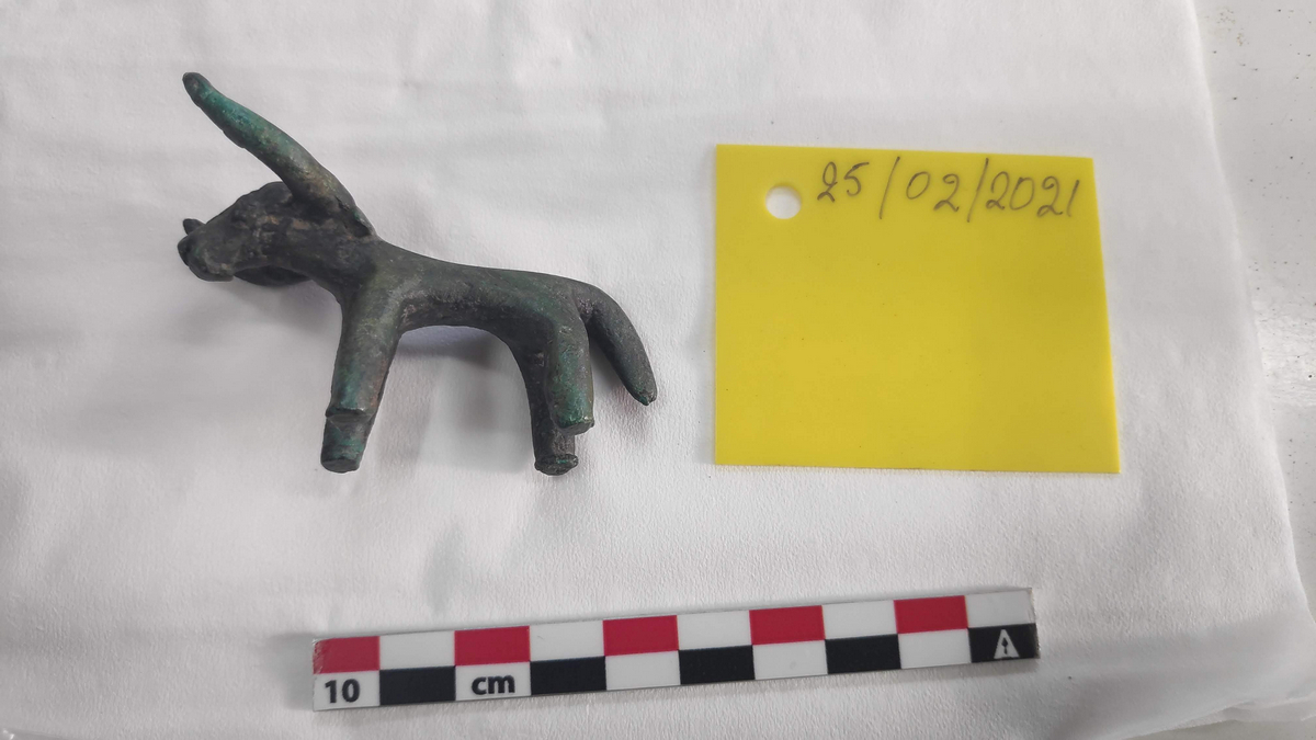 Στο φως του ήλιου της Ολυμπίας ήρθε ένα χάλκινο ειδώλιο ταύρου κατά τη διάρκεια αυτοψίας που διενεργούσε ομάδα επιστημόνων αποτελούμενη από στελέχη Κεντρικών Υπηρεσιών του Υπουργείου Πολιτισμού και της Εφορείας Αρχαιοτήτων Ηλείας.