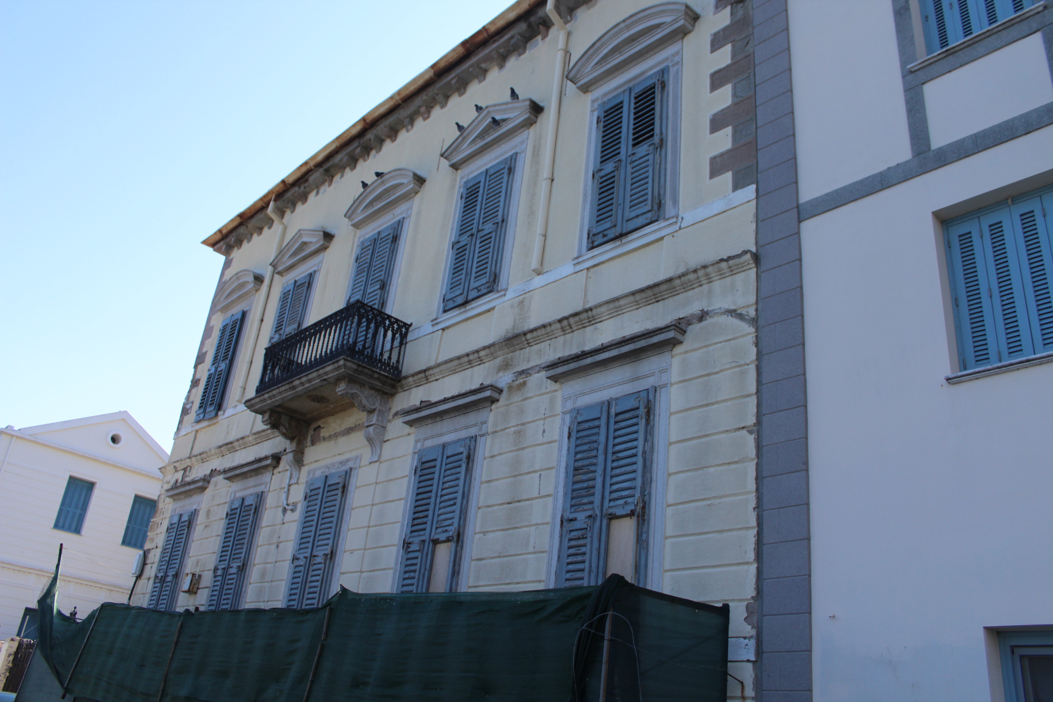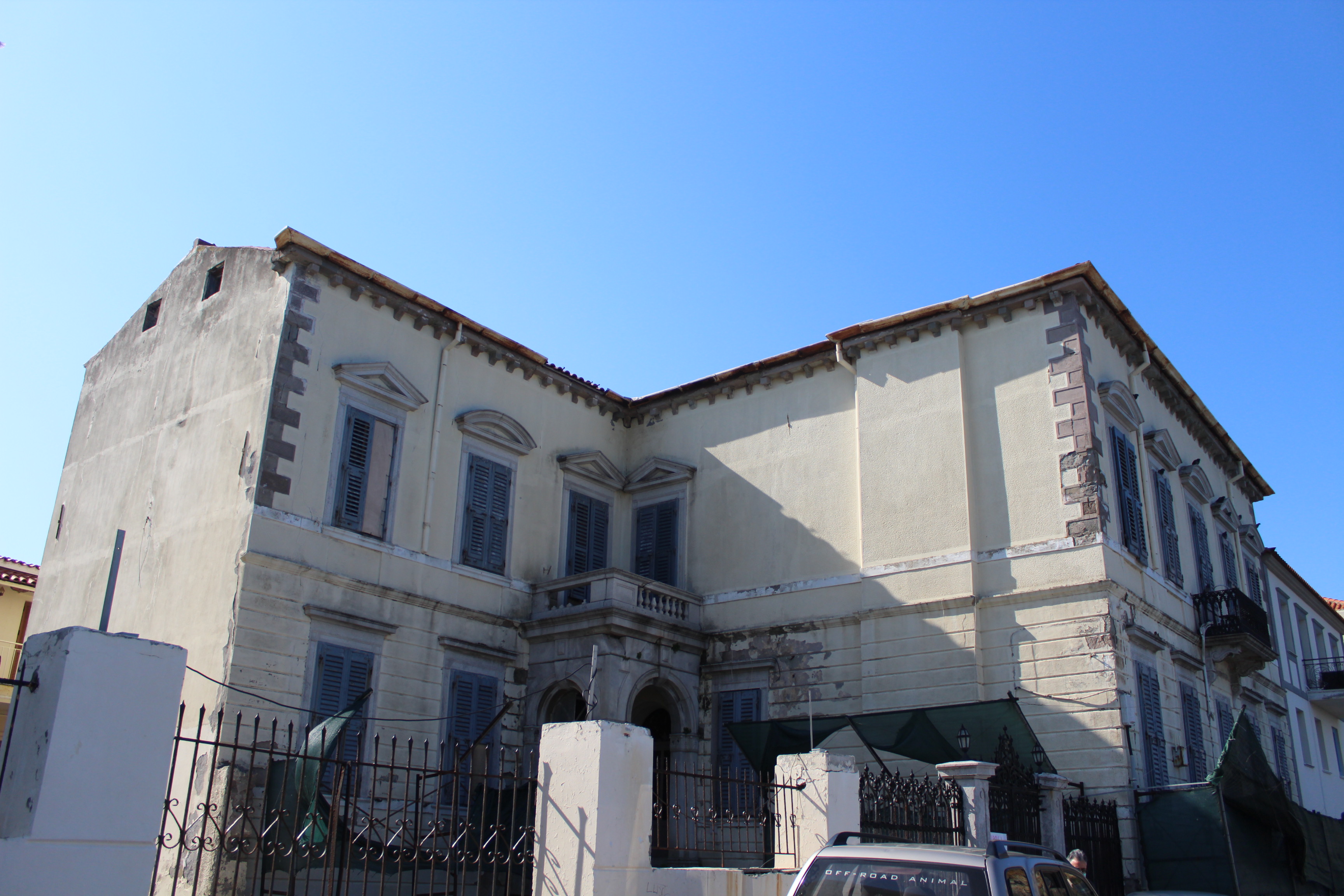 Πρόκειται για ένα διώροφο κτίσμα κάτοψης σχήματος Γ με επιφάνεια 637,16 τμ. ανά όροφο. Διαθέτει και υπόγειο επιφάνειας 317,58 τμ. όπως και σοφίτα 265,38 τμ. Την τελευταία δεκαετία είχε εγκαταλειφθεί, παρουσιάζοντας σημαντικές ζημιές από τους σεισμούς αλλά και από τα προβλήματα στη στέγη του.
