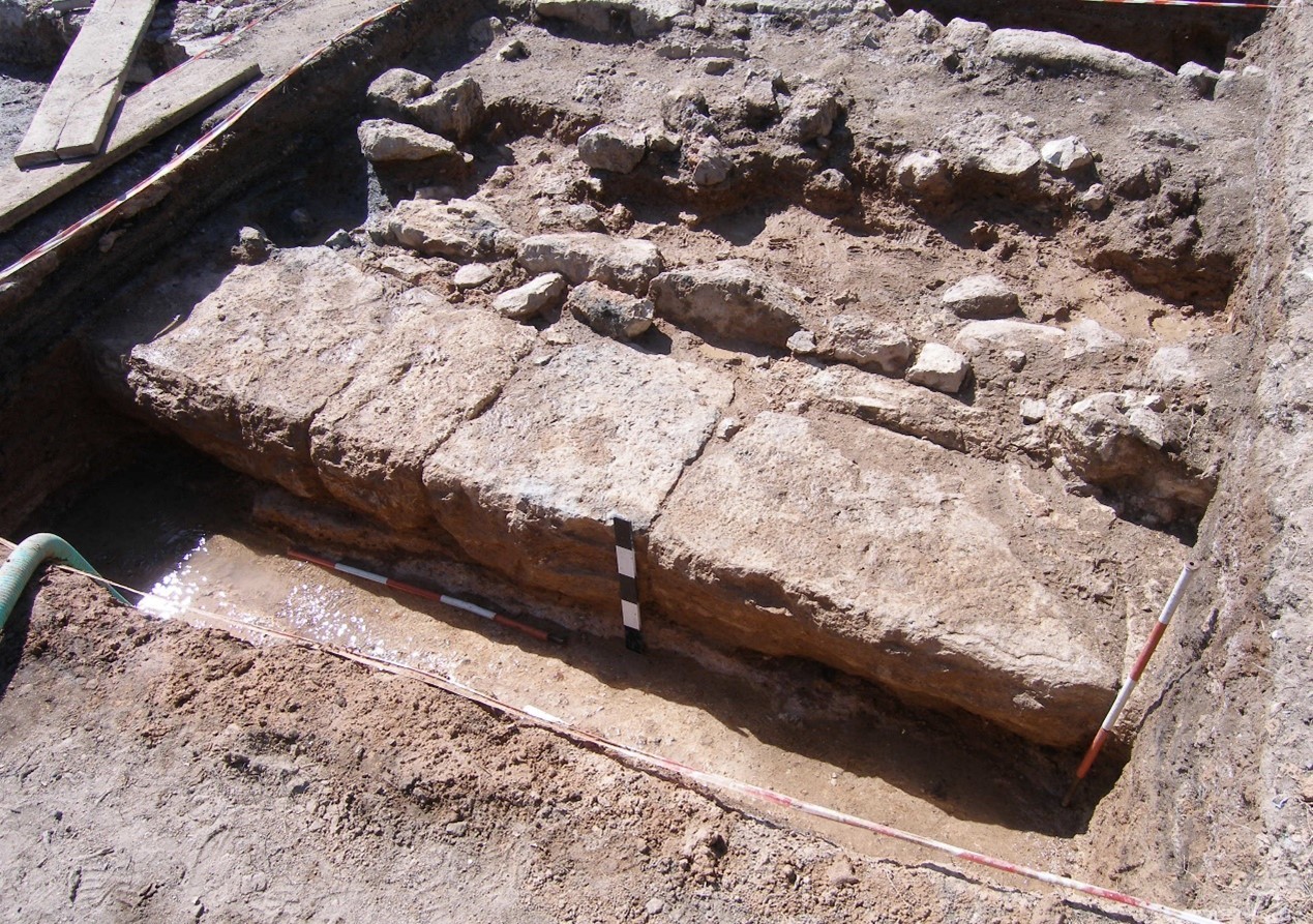 Το ερευνηθέν τμήμα του τείχους παρακολουθήθηκε σε μήκος 16 μ. περίπου. Για την συγκρότησή του, γενικά, έχουν χρησιμοποιηθεί λιθόπλινθοι και άλλοι μεγάλοι ειργασμένοι λίθοι στα δύο μέτωπα (δυτικό και ανατολικό) και αργοί λίθοι, μεσαίοι και μικροί, και χαλίκια, για το γέμισμα εσωτερικά. Ας σημειωθεί ότι στα δύο βορειότερα ανασκαφικά τετράγωνα, το δυτικό μέτωπο διατηρείται σε δύο στρώσεις λιθοπλίνθων.
