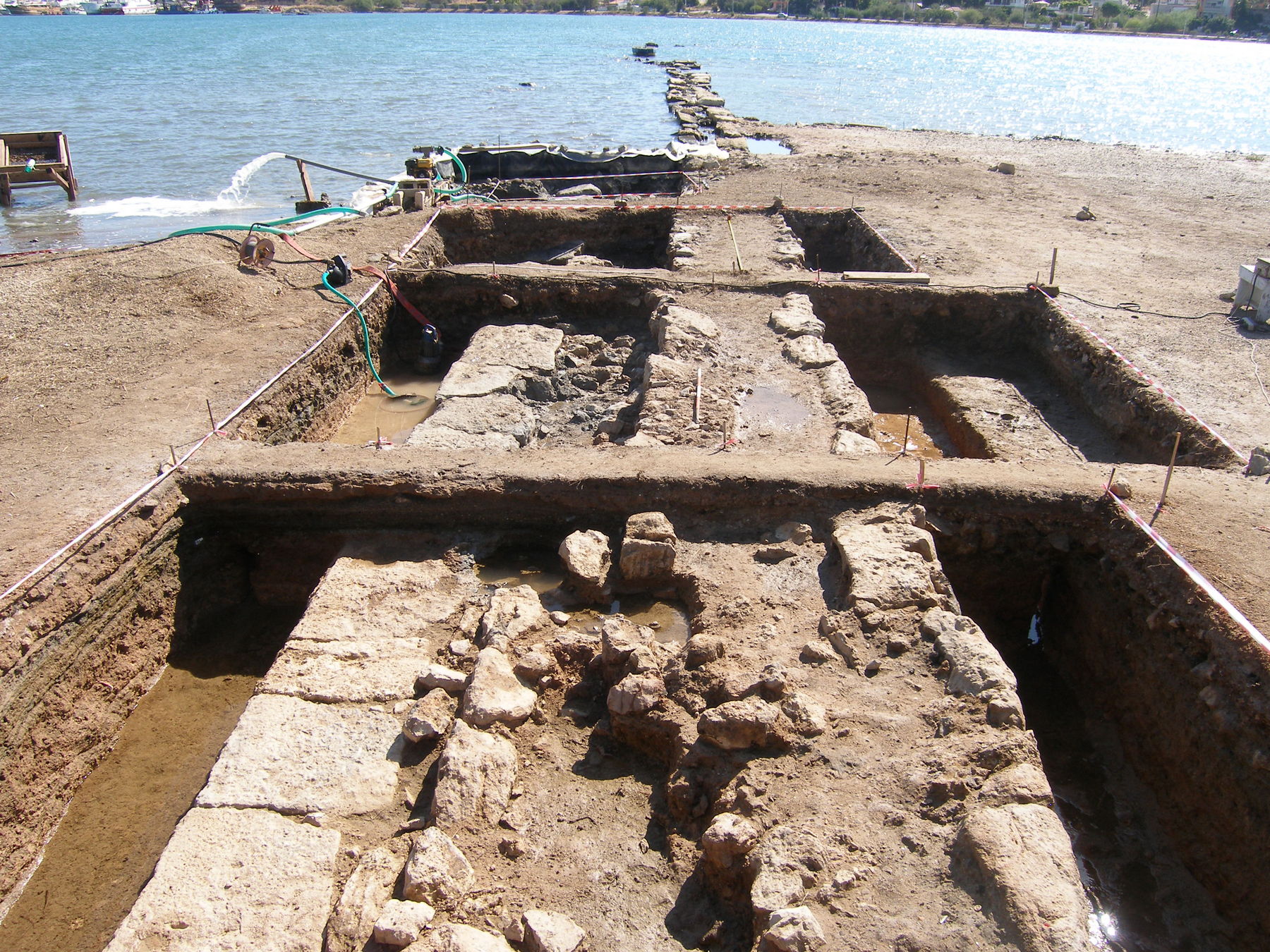 Περαιτέρω, αποσαφηνίσθηκε οριστικά ότι το υπόλειμμα του δυτικού μέρους/μετώπου του αρχαίου τείχους, με κατεύθυνση Β.-Ν., αποτέλεσε για τους νεώτερους, το στιβαρό υπόβαθρο για την κατασκευή του υπάρχοντος μακρού μώλου, ο οποίος σχεδόν πάντοτε προβάλλει στην επιφάνεια της θάλασσας, και ενέχει, όπως θα εξηγήσουμε αλλού, το δικό του ιστορικό ενδιαφέρον, από τα χρόνια του Αγώνος της Ανεξαρτησίας.
