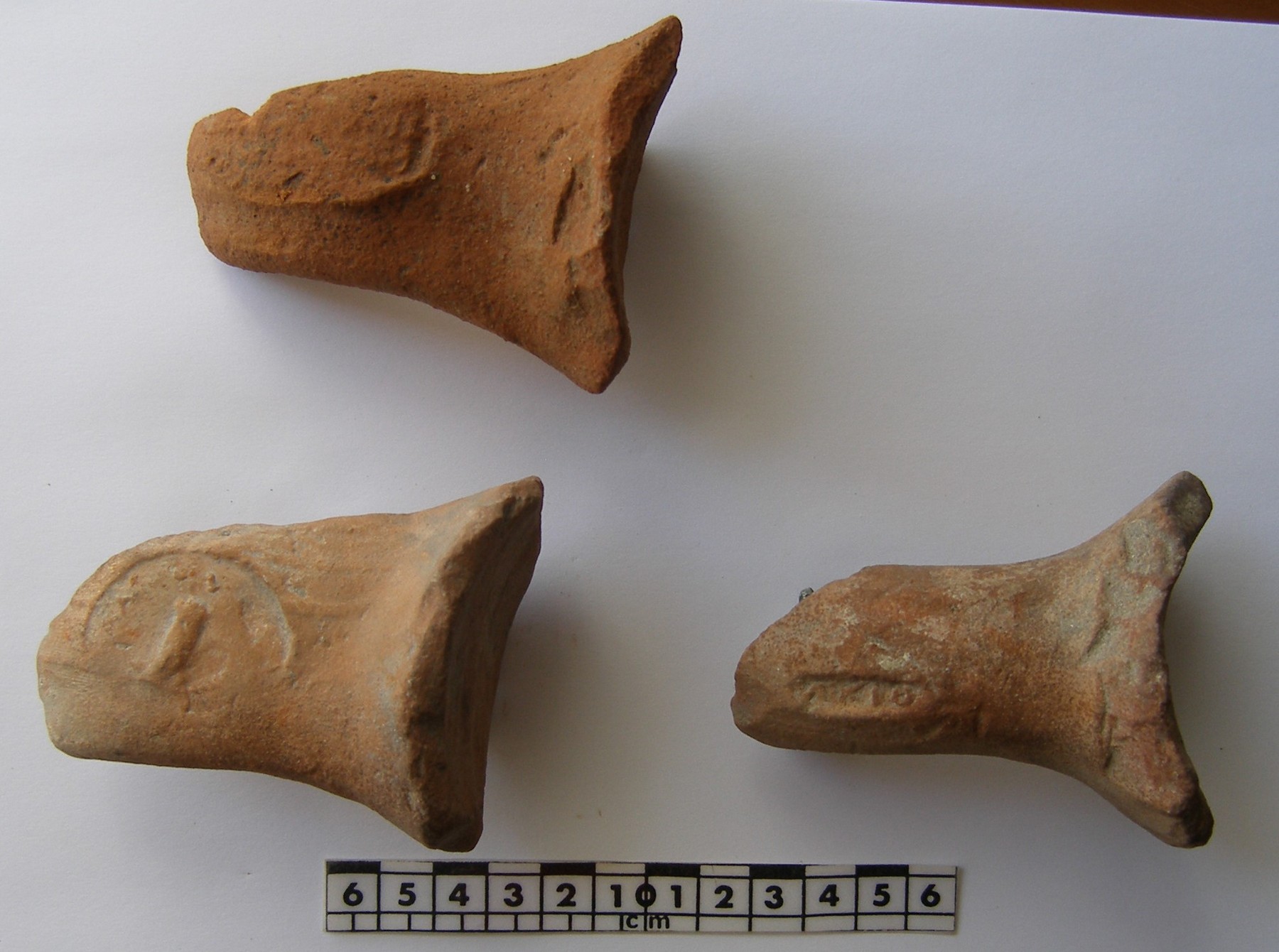 Το κάτω ήμισυ ερυθρόμορφου Αττικού κρατήρα (από το επίπεδο θεμελίωσης του Δ. μετώπου του τείχους στο βορειότερο Τετράγωνο), 3 ενσφράγιστες λαβές εμπορικών αμφορέων και θραύσμα παχέος χείλους πίθου, με τμήμα εγχάρακτης (ή έντυπης) επιγραφής: ]ΝΑΝ. Από τα άλλα κινητά ευρήματα αξίζει να αναφερθούν ιδιαιτέρως: Θραύσμα χείλους και τοιχώματος ρηχής μαρμάρινης λεκάνης (περιρραντηρίου), τμήμα μαρμάρινου αρχιτεκτονικού στοιχείου (ή βάθρου/βωμού), χάλκινο αρχαίο νόμισμα (αδιάγνωστο) και πήλινα αντικείμενα (θραύσμα αναγλύφου, αγνύθα και πώματα).