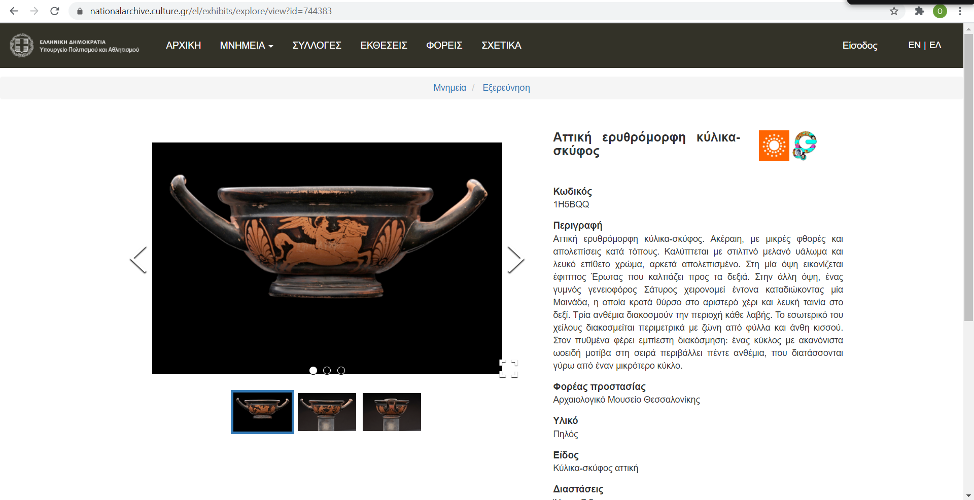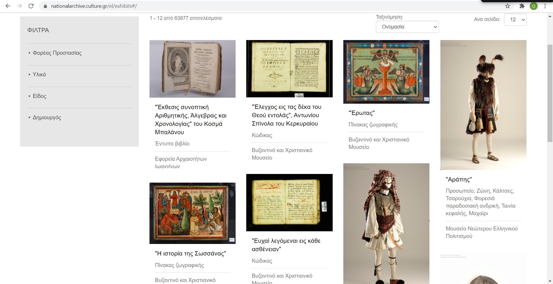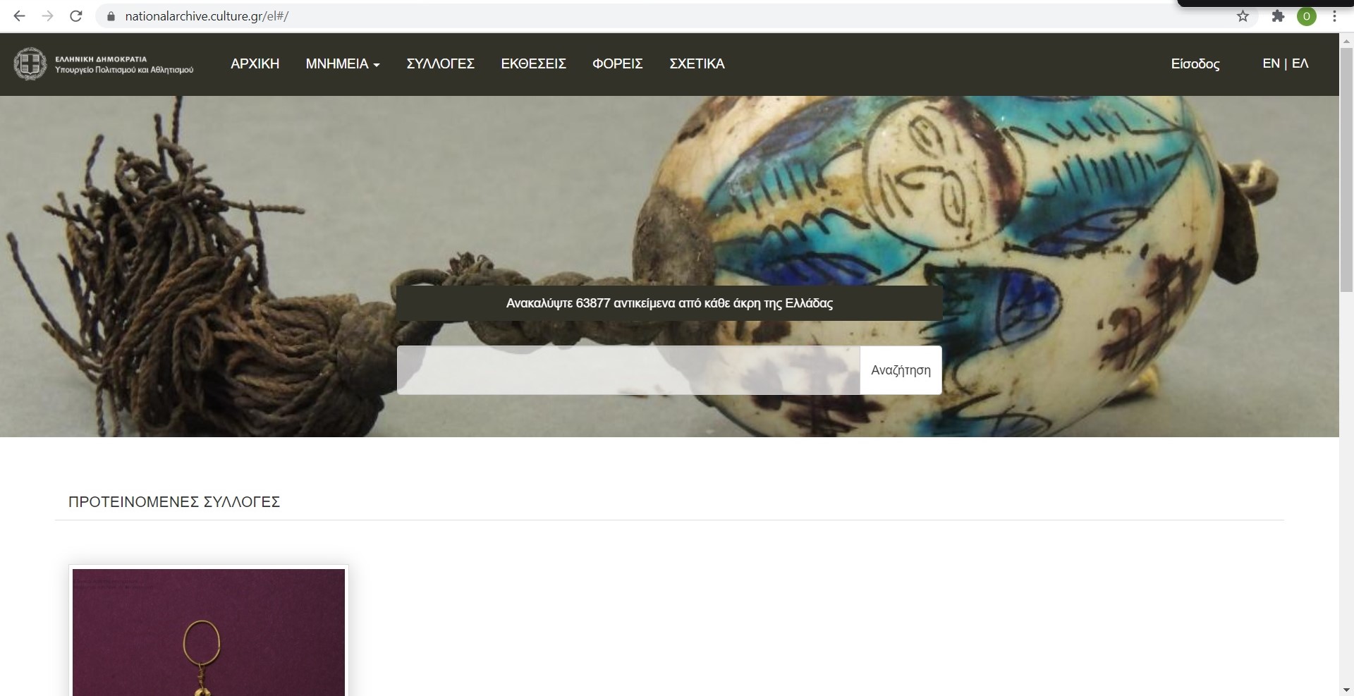 Μια μοναδική πύλη πρόσβασης στην πολιτιστική κληρονομιά της χώρας είναι το έργο «Εμπλουτισμός των Ψηφιακών Συλλογών των Κινητών Μνημείων του Υπουργείου Πολιτισμού και Αθλητισμού και Ανάπτυξη Πληροφοριακού Συστήματος του Εθνικού Αρχείου Μνημείων». Από μεθαύριο οι πολίτες μπορούν να επισκεφτούν τον πλήρως ολοκληρωμένο και λειτουργικό ιστότοπο nationalarchive.culture.gr. Είναι ένα εξαιρετικά εύχρηστο και φιλικό εργαλείο διαχείρισης του πολιτιστικού αποθέματος. Περιλαμβάνει καταγραφές 684.000 κινητών μνημείων, από νεολιθικά εργαλεία μέχρι κεραμεική κλασικών χρόνων, από ελληνιστικά γλυπτά, μέχρι βυζαντινές τοιχογραφίες, από μεταβυζαντινές εικόνες μέχρι παραδοσιακές φορεσιές. Στη Διαδικτυακή Πύλη δημοσιεύονται, σε πρώτη φάση, περίπου 63.000 αντιπροσωπευτικά μνημεία, σύμφωνα με τις συμβατικές υποχρεώσεις του συγχρηματοδοτούμενου έργου.