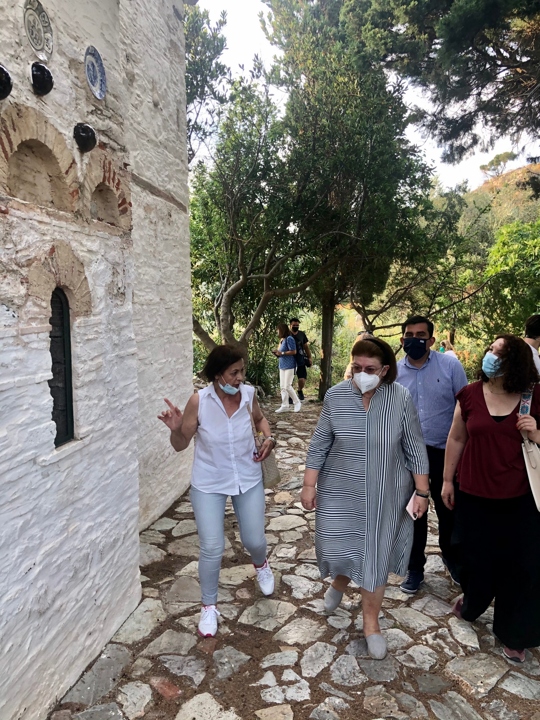 Η Λίνα Μενδώνη, συνοδευόμενη από τον Περιφερειάρχη Θεσσαλίας Κώστα Αγοραστό, τον δήμαρχο Σκιάθου Θοδωρή Τζούμα, την Προϊσταμένη της Εφορείας Αρχαιοτήτων Μαγνησίας Ανθή Μπάτζιου και υπηρεσιακά στελέχη του ΥΠΠΟΑ, επισκέφθηκε το Κάστρο της Σκιάθου, την Ιερά Μονή Εικονίστριας και την Ιερά Μονή Παναγίας Κεχριάς. Τα έργα έχουν ενταχθεί και χρηματοδοτούνται από το ΠΕΠ Θεσσαλίας- ΕΣΠΑ 2014-2021.