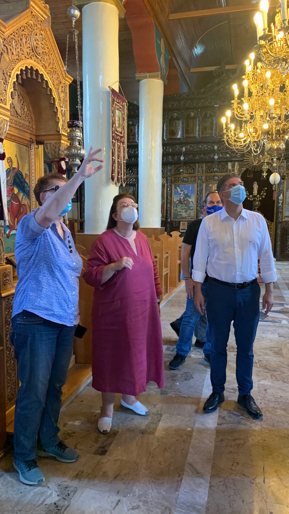 Την Υπουργό Πολιτισμού και Αθλητισμού συνόδευσαν στα μνημεία της πόλης της Λάρισας, ο Περιφερειάρχης Θεσσαλίας Κώστας Αγοραστός και ο Δήμαρχος Λαρισαίων Απόστολος Καλογιάννης, καθώς και ο βουλευτής Χρήστος Κέλλας. Στην Ελασσόνα, τη Λίνα Μενδώνη υποδέχθηκε ο Μητροπολίτης Ελασσώνος κ. Χαρίτων, ενώ στα αντίστοιχα μνημεία των περιοχών τους παρόντες ήταν οι δήμαρχοι Τυρνάβου Γιάννης Κόκουρας,, Ελασσώνος Νίκος Γάτσας και Κιλελέρ Θανάσης Νασιακόπουλος. Σε όλες τις αυτοψίες, την Υπουργό συνόδευσαν, η προϊσταμένη της Εφορείας Αρχαιοτήτων Λάρισας Σταυρούλα Σδρόλια, η προϊσταμένη της Διεύθυνσης Βυζαντινών και Μεταβυζαντινών Αρχαιοτήτων Τζούλια Παπαγεωργίου, ο προϊστάμενος Συντήρησης Βυζαντινών και Μεταβυζαντινών Μνημείων Θέμης Βλαχούλης, καθώς και υπηρεσιακά στελέχη του ΥΠΠΟΑ.