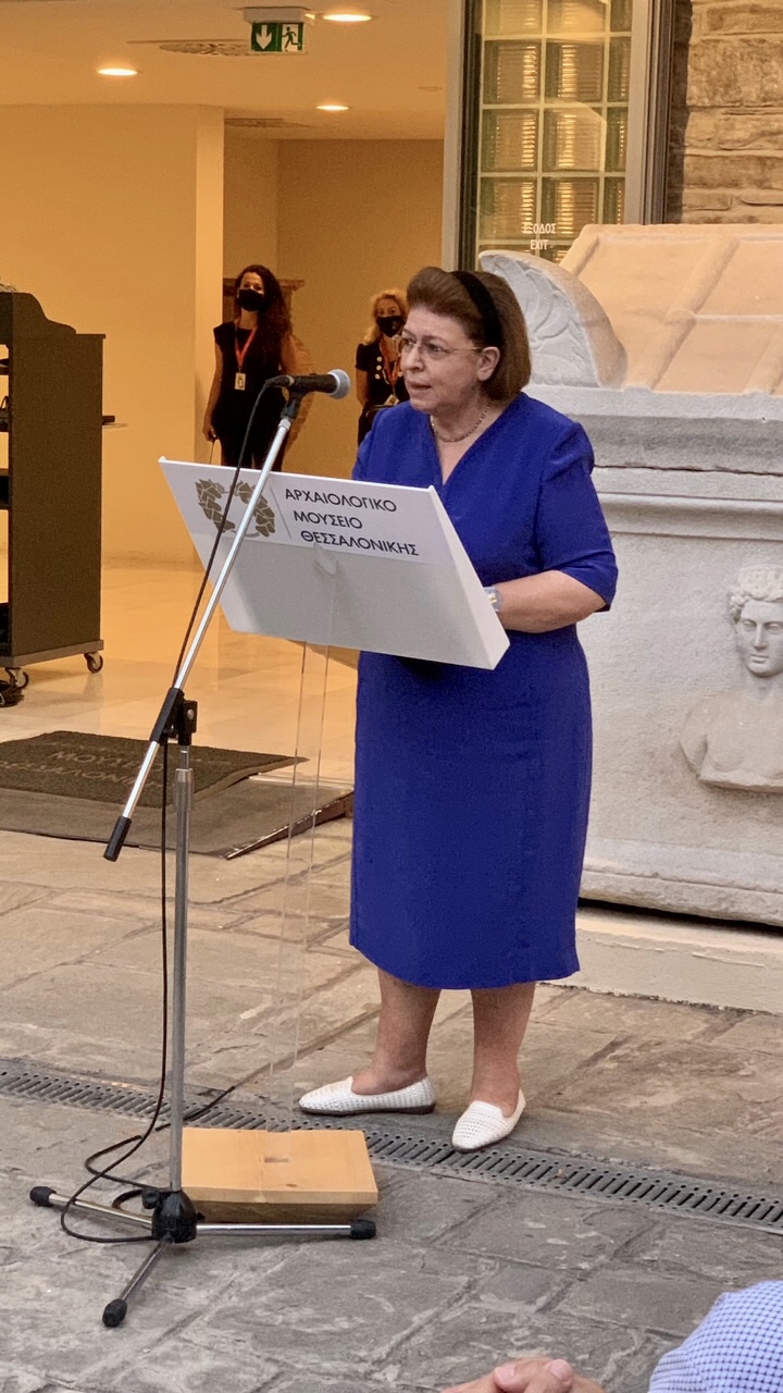 «Η σημερινή μου παρουσία στη Θεσσαλονίκη και ειδικά στο Αρχαιολογικό Μουσείο της πόλης, με αφορμή τα εγκαίνια της περιοδικής έκθεσης «Για μια φλόγα που καίει. Αρχαιότητες και Μνήμη, Θεσσαλονίκη – Μακεδονία [1821-2021]», είναι ένα γεγονός που πραγματικά μου προκαλεί χαρά και τιμή. Το Αρχαιολογικό Μουσείο Θεσσαλονίκης είναι ένα σημαντικό μουσείο, που το Υπουργείο Πολιτισμού και Αθλητισμού, το αγαπάει, το φροντίζει, πιστεύει σ' αυτό και στις δυνατότητές του, στην εξέλιξη που μπορεί να έχει.