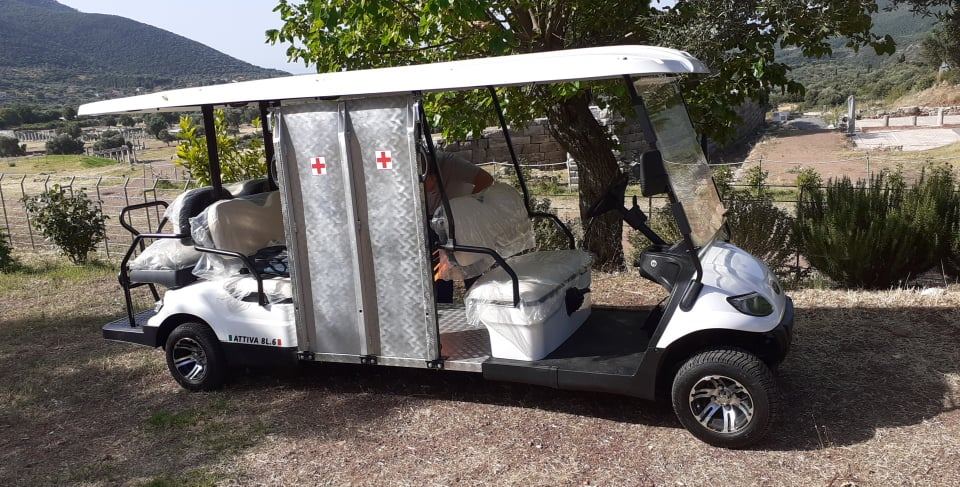 Το αμαξίδιο εξυπηρετεί τους επισκέπτες για την περιήγηση στα μνημεία αλλά και στους χώρους που πραγματοποιούνται πολιτιστικές εκδηλώσεις. Αξιοποιείται επίσης, στην αντιμετώπιση τυχόν εκτάκτων περιστατικών υγείας προς διευκόλυνση της άμεσης μεταφοράς των επισκεπτών στην έξοδο του αρχαιολογικού χώρου προκειμένου να τους παρασχεθούν οι πρώτες βοήθειες.