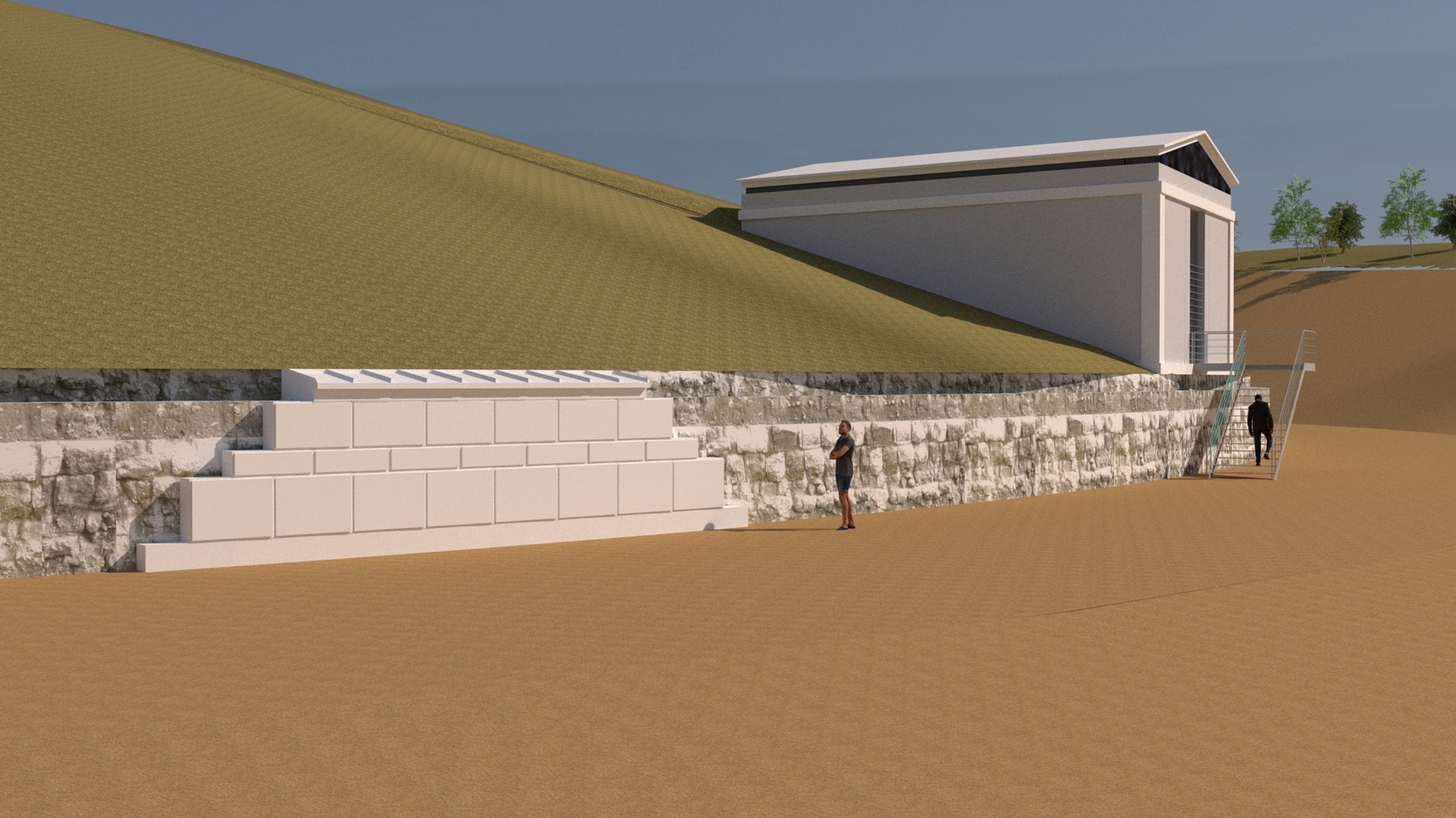 Διασφαλίζεται επίσης η προσβασιμότητα του έργου σε ΑμεΑ, με διαμόρφωση διαδρομής από την είσοδο του αρχαιολογικού χώρου έως την είσοδο του ταφικού μνημείου. Εκεί θα υπάρχει ειδικός μηχανισμός μικρού αναβατορίου, σε επαφή με την εξωτερική μεταλλική κλίμακα.
