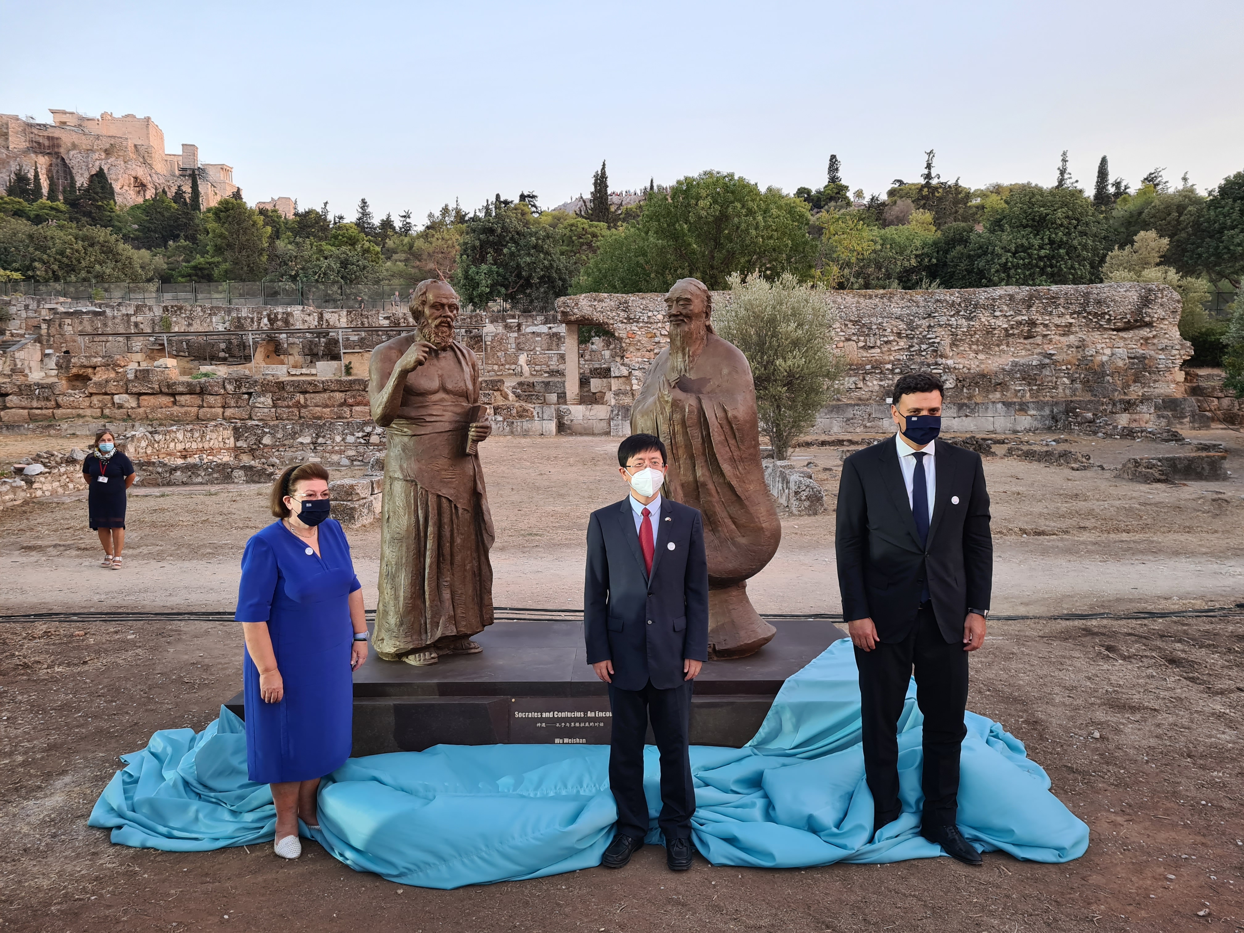 Η εκδήλωση ολοκληρώθηκε με τα αποκαλυπτήρια των αγαλμάτων του Σωκράτη και του Κομφούκιου, με σημείο συνάντησης ελληνικού και κινεζικού πολιτισμού την Αρχαία Αγορά των Αθηνών, και το 2021, το Έτος Πολιτισμού και Τουρισμού Ελλάδας – Κίνας.