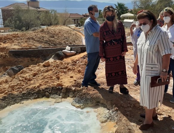 Στον Δήμο Ιστιαίας–Αιδηψού, η Υπουργός Πολιτισμού και Αθλητισμού Λίνα Μενδώνη, επισκέφτηκε, επίσης, το παλαιό υδροθεραπευτήριο και τις πηγές της Αιδηψού και πραγματοποίησε αυτοψία στο έργο αντικατάστασης του στεγάστρου στο σημείο, όπου έχει τοποθετηθεί ο «Ταύρος των Ωρεών», ενώ εξετάστηκε και η δυνατότητα κατασκευής εκθεσιακού-μουσειακού χώρου στην άμεση περιοχή, ώστε να δημιουργηθεί ένας ιδιαίτερος πολιτιστικός πόλος.