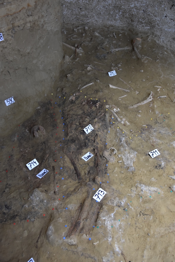 Ο θάλαμος του τάφου 8, σχήματος ορθογώνιου παραλληλόγραμμου, ο οποίος ερευνήθηκε φέτος, παρουσίασε μια σύνθετη στρωματογραφία. Στο πρώτο στρώμα ταφών του 12ου αι. π.Χ, ερευνήθηκαν τρεις ταφές κατά χώραν, κτερισμένες με ψευδόστομους αμφορείς. Τα οστά των παλαιότερων ταφών είχαν αφαιρεθεί και τοποθετηθεί με σεβασμό και μεγάλη προσοχή σε δύο επάλληλους σωρούς στην πίσω πλευρά του θαλάμου σε επαφή με τα τοιχώματα του τάφου. Στην κορυφή αυτών των ανακομιδών, τρία γραπτά πήλινα αλάβαστρα και ένας αμφορέας χρονολογούν αυτές τις πρώτες ταφές στην πρωτοανακτορική περίοδο (14ος αι. π.Χ.).