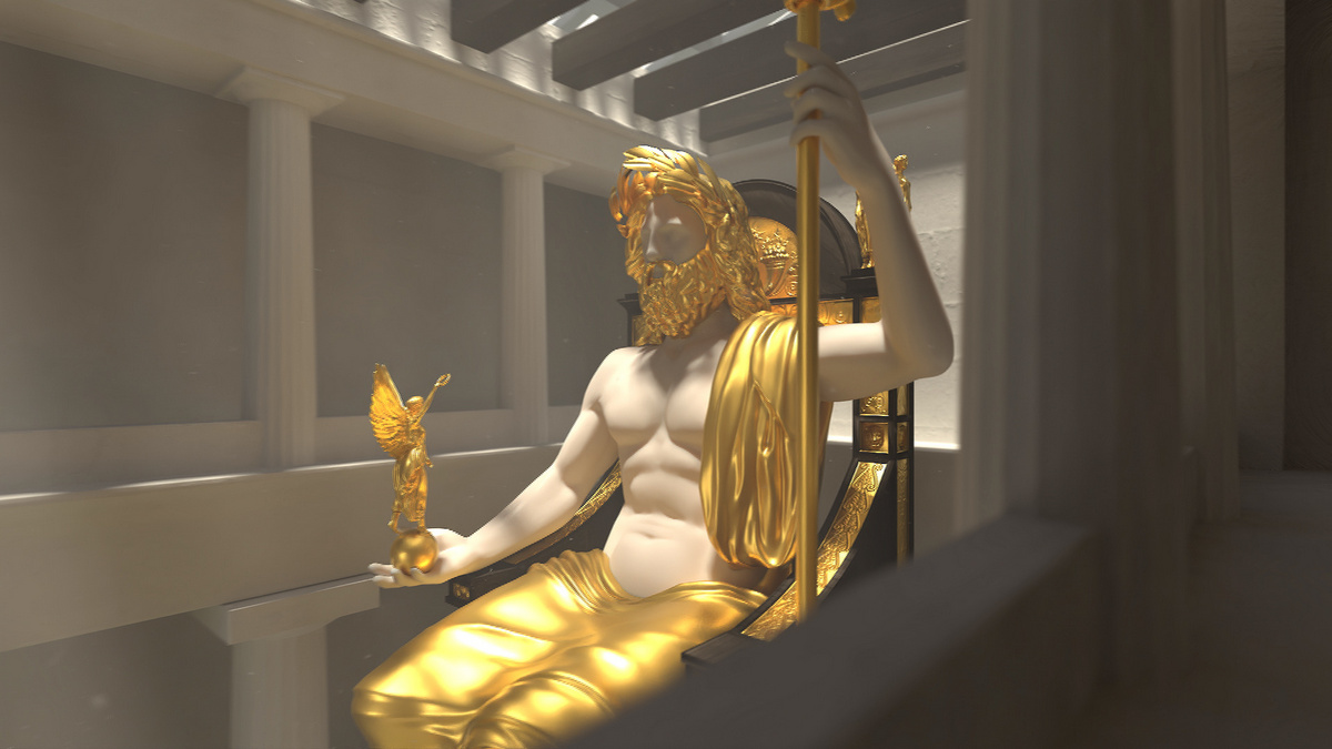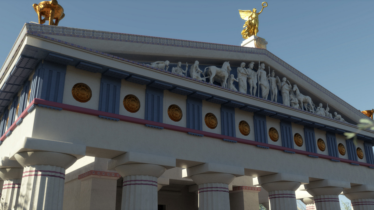 Συνολικά, το έργο αποκαθιστά ψηφιακά 27 μνημεία στο χώρο, μεταξύ αυτών, το Στάδιο, τους ναούς του Δία και της Ήρας, το εργαστήριο του Φειδία. Στην τρισδιάστατη εμπειρία, αυτά τα κτίρια ανασυντίθενται με ρεαλιστική λεπτομέρεια, με επίπονη έρευνα από διεπιστημονική ομάδα του Υπουργείου Πολιτισμού και Αθλητισμού, για να είναι όσο το δυνατόν πιο πιστά στην αρχική τους μορφή. Αυτό περιλαμβάνει ιστορικά χρονοδιαγράμματα των αλλαγών του χώρου, με την πάροδο του χρόνου και απεικονίσεις τεχνουργημάτων από κάθε περίοδο.