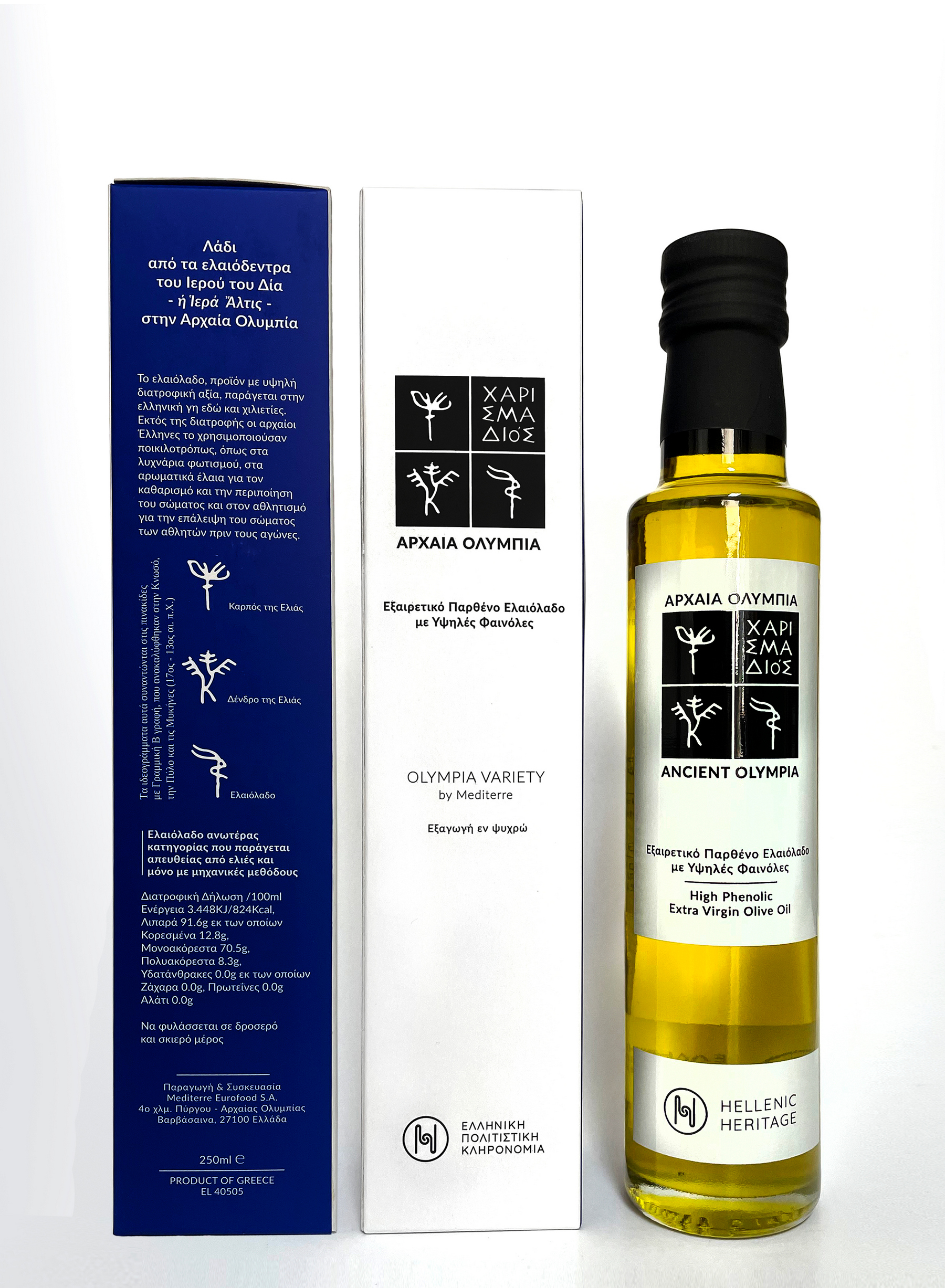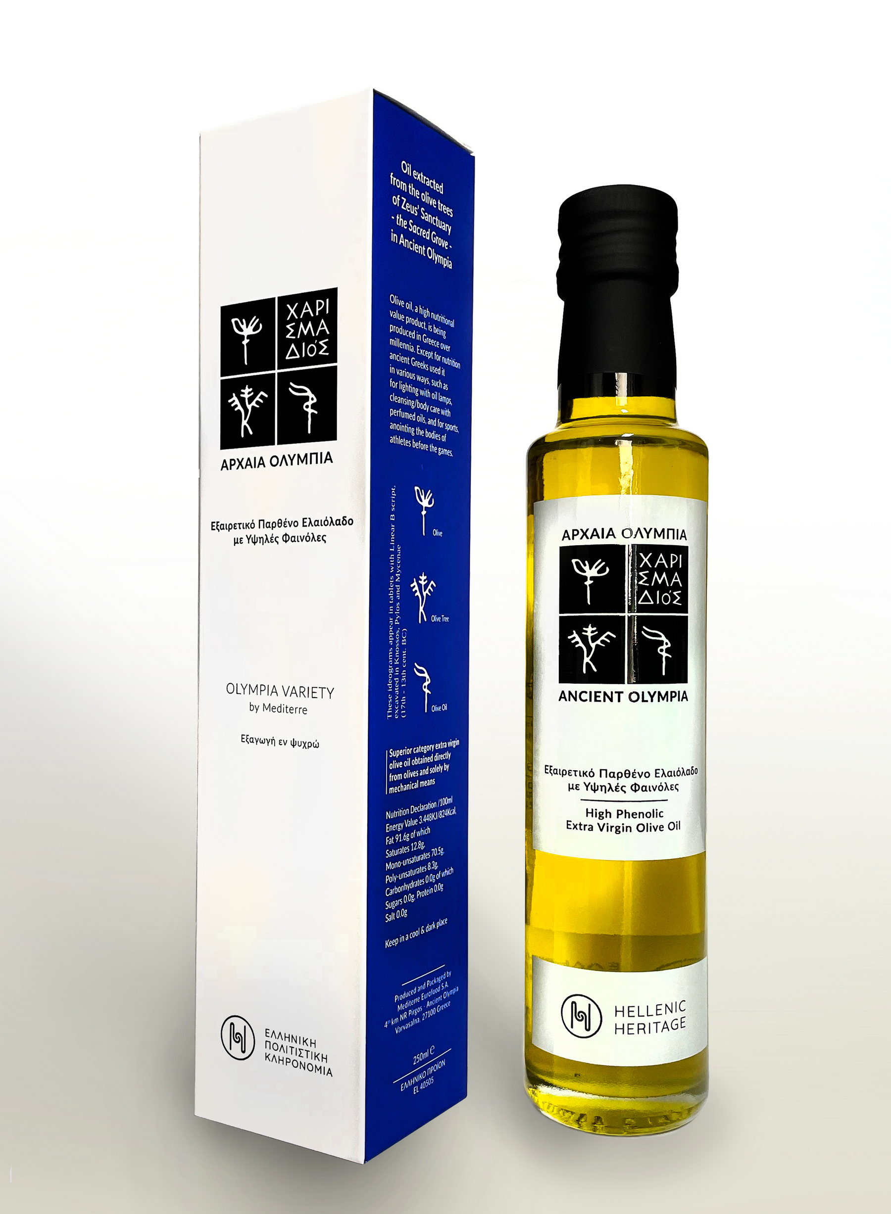 Στις συσκευασίες αναγράφονται στοιχεία τόσο για τα υψηλής στάθμης ποιοτικά χαρακτηριστικά του ελαιολάδου, όσο και για την σύνδεσή του με την μακραίωνη και σημαντική ιστορία των δυο αρχαιολογικών χώρων, που σχετίζονται με την ίδρυση και τέλεση των Ολυμπιακών Αγώνων κατά την αρχαιότητα.