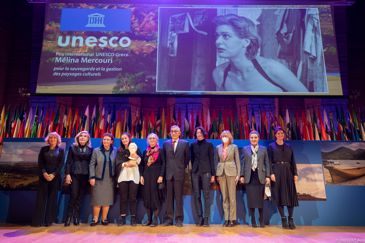 Το Διεθνές Βραβείο UNESCO «Μελίνα Μερκούρη» δημιουργήθηκε το 1995 με χρηματοδότηση της Ελλάδας και είναι το πρώτο αμιγώς πολιτιστικό βραβείο του Οργανισμού. Σκοπός του είναι η ανάδειξη του πολιτιστικού τοπίου, ως βασικής παραμέτρου των μνημείων και των αρχαιολογικών χώρων και απονέμεται για δράσεις ξεχωριστής σημασίας για την προστασία και ανάδειξη των πολιτιστικών τοπίων, που ανήκουν στην παγκόσμια πολιτιστική κληρονομιά.
