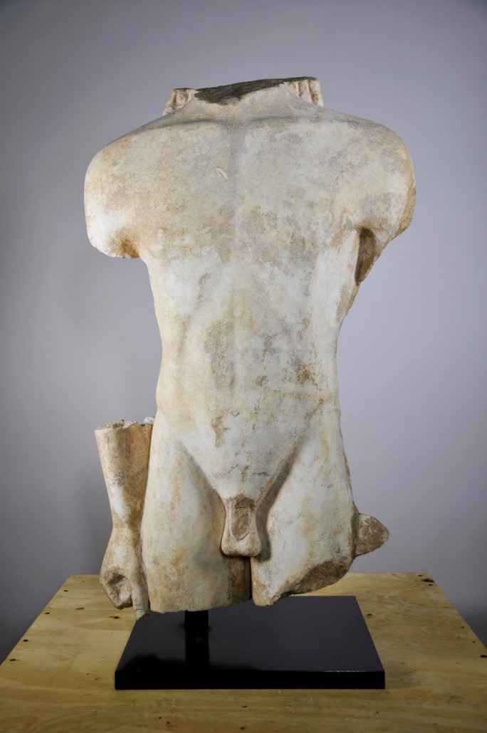1. Μαρμάρινος κορμός κούρου. Χρονολογείται γύρω στο 560 π.Χ. Ύψος 78,8 εκ. Έργο πιθανότατα βοιωτικού εργαστηρίου.