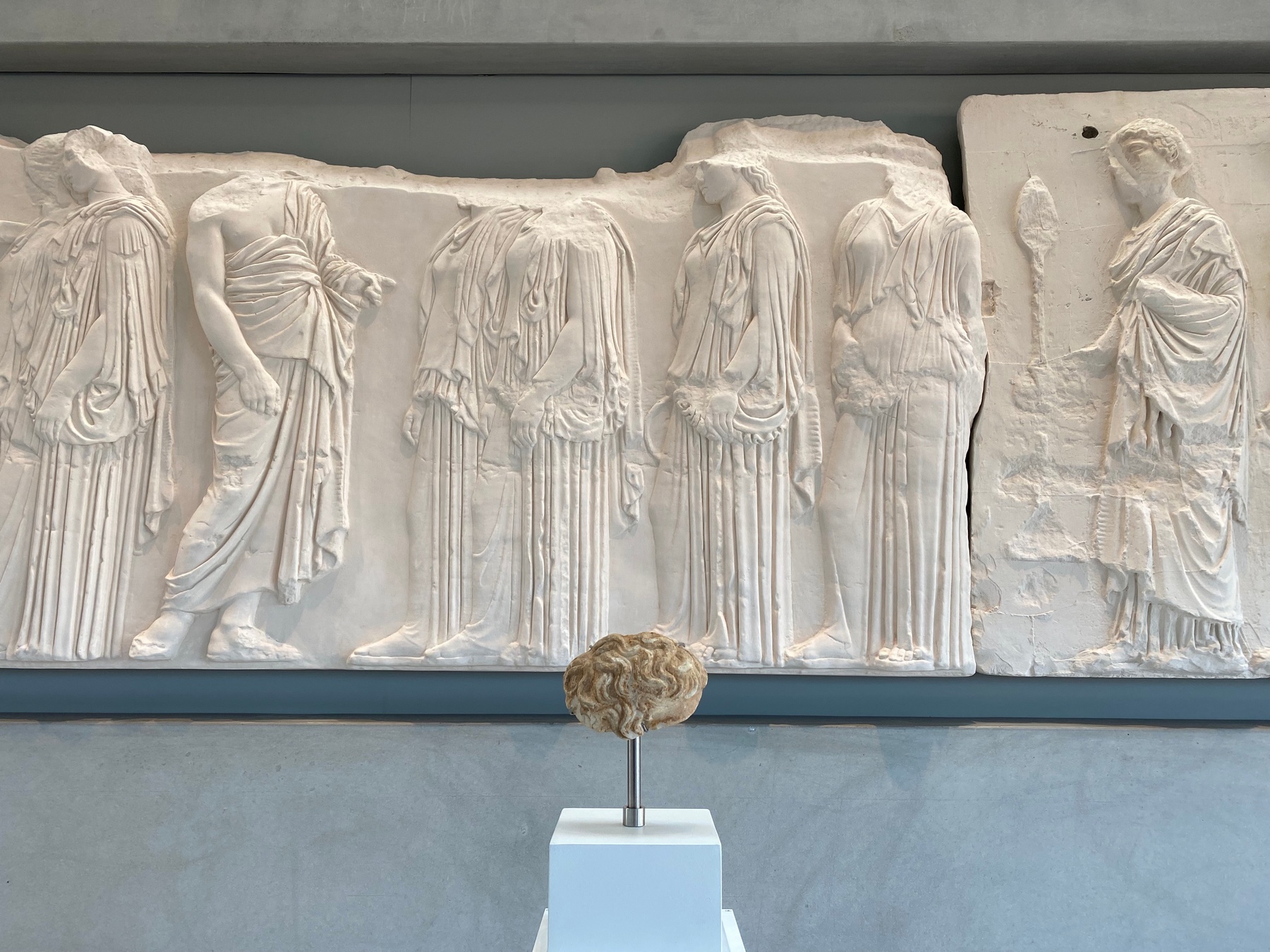Η κίνηση αυτή δεν είναι απλώς συμβολική. Είναι απολύτως ουσιαστική. Αυτά τα αποτμήματα, αριστουργήματα γλυπτικής τέχνης, ήταν σημαντικά για τις Συλλογές του Εθνικού Αρχαιολογικού Μουσείου. Όμως, εδώ, στο Μουσείο Ακροπόλεως, αποκτούν εντελώς διαφορετική σημασία, αποκτούν άλλο εννοιολογικό περιεχόμενο, όταν βρίσκουν την αρχική τους θέση στη ζωφόρο ή όταν συνεκτίθενται με τα συμφραζόμενά τους.