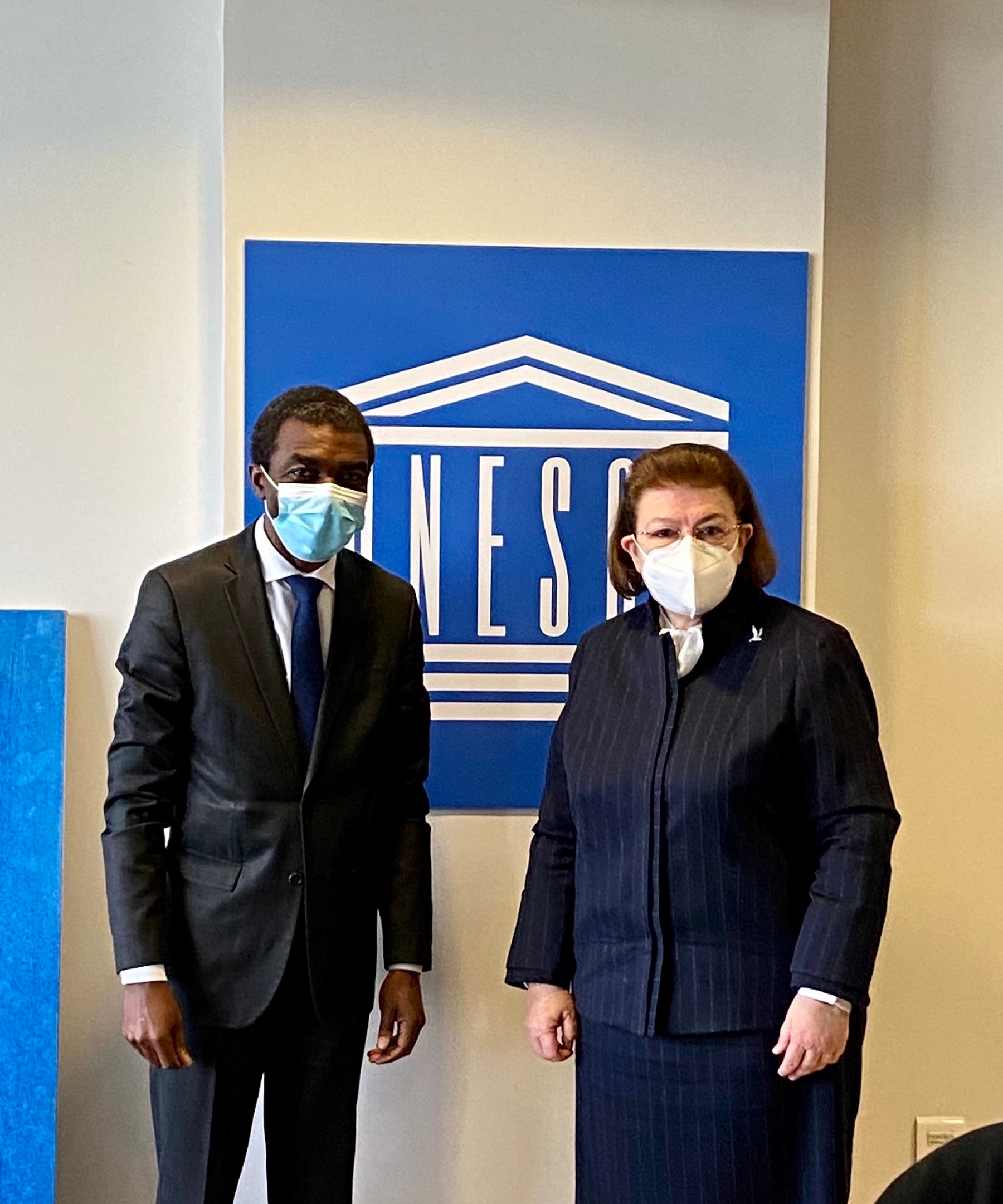 Στο πλαίσιο της επίσκεψής της στο Παρίσι, η Υπουργός Πολιτισμού και Αθλητισμού είχε συναντήσεις στην έδρα της UNESCO, με τον αν. Γενικό Διευθυντή του Οργανισμού για θέματα Πολιτισμού Ernesto Ottone και τον Διευθυντή του Κέντρου Παγκόσμιας Κληρονομιάς Lazare Eloundou.