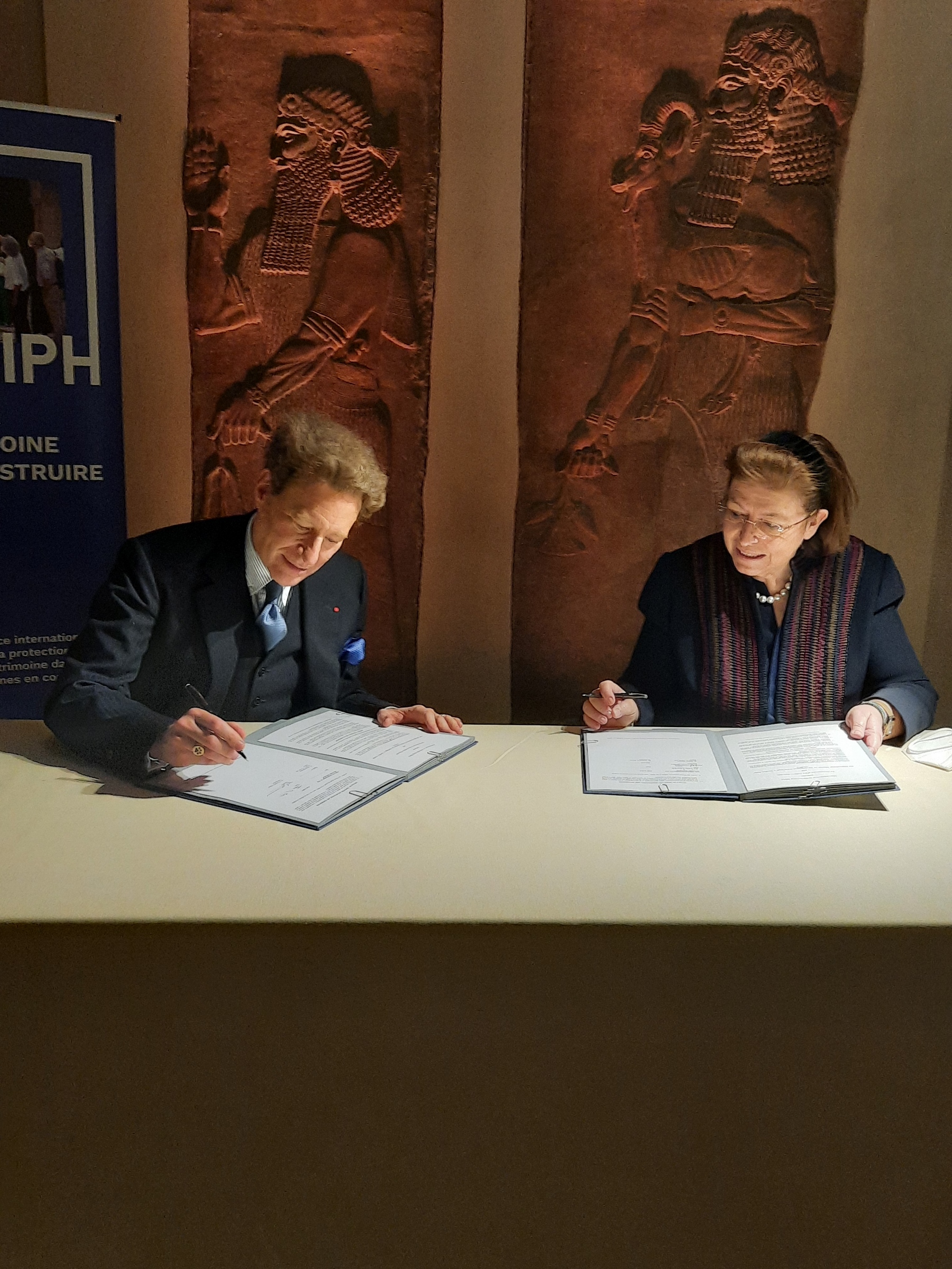 Η Υπουργός Πολιτισμού και Αθλητισμού Λίνα Μενδώνη, υπέγραψε εκ μέρους της Ελληνικής Κυβέρνησης, Μνημόνιο Συνεργασίας με τον Πρόεδρο του ALIPH Δρ Thomas Kaplan, στο 2ο Συνέδριο Δωρητών ALIPH, που πραγματοποιήθηκε τη Δευτέρα, στο Μουσείο του Λούβρου, στο Παρίσι.