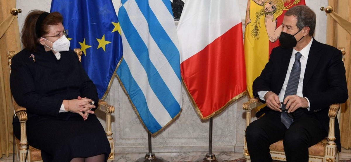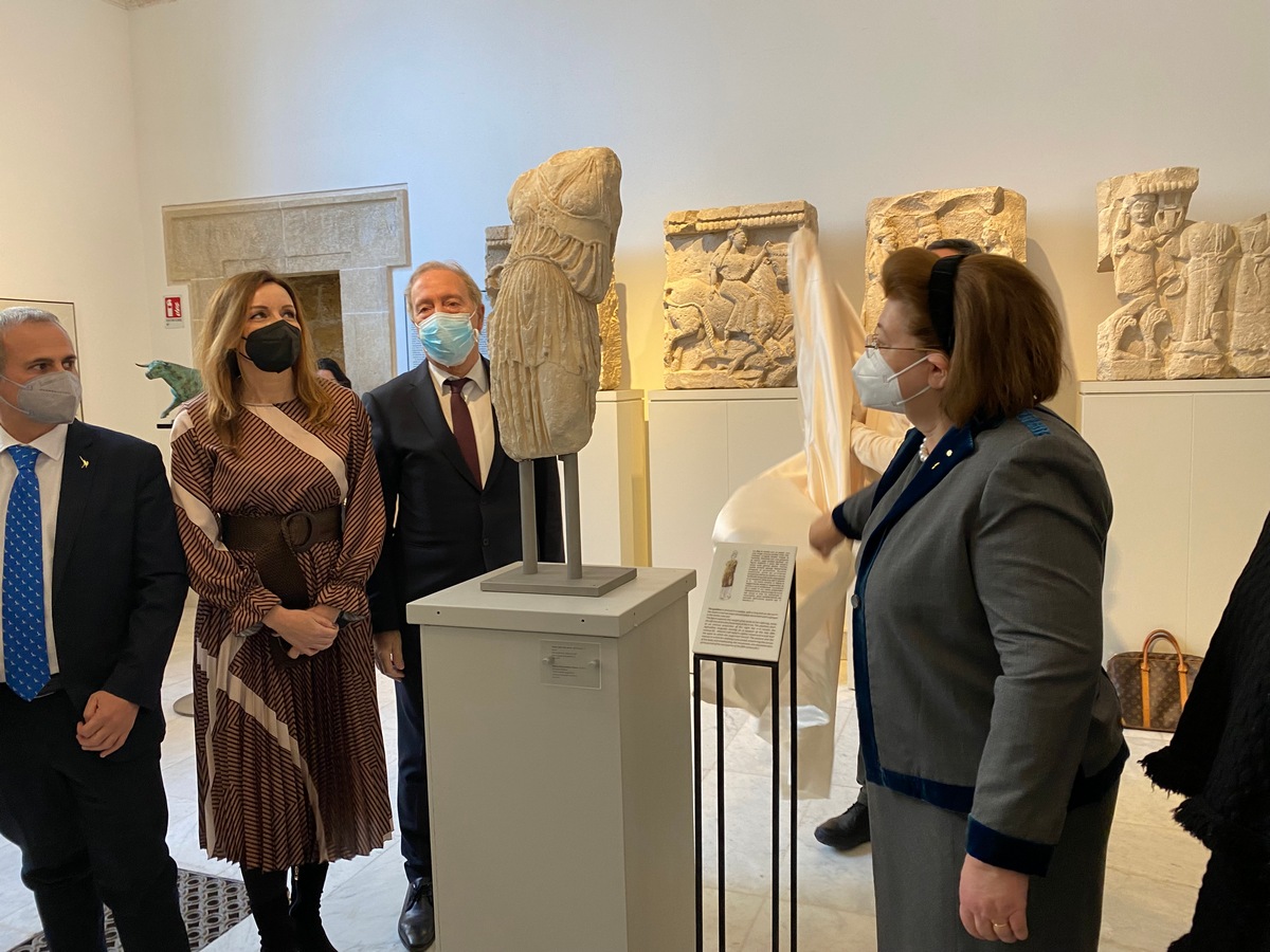 Πριν από την τελετή στο Μουσείο Antonino Salinas, o Πρόεδρος της Περιφέρειας της Σικελίας Nello Musumeci, καλωσόρισε τη Λίνα Μενδώνη στο Palazzo Orléans λέγοντας ότι «Είναι αδύνατο να σκεφτούμε την ιστορία της Σικελίας χωρίς τον ελληνικό πολιτισμό. Η πρόσφατη συμφωνία που υπογράφηκε μεταξύ των μουσείων της Σικελίας και της Ελλάδας είναι το σημείο εκκίνησης μιας συνέργειας που έχει ξεκινήσει, απόδειξη του ανανεωμένου ενδιαφέροντος για την επανέναρξη των σχέσεων συνεργασίας με τις μεσογειακές χώρες. Είναι το πρώτο βήμα μιας μακράς διαδρομής που ελπίζουμε θα συνεχιστεί στο όνομα των πολιτιστικών ανταλλαγών».