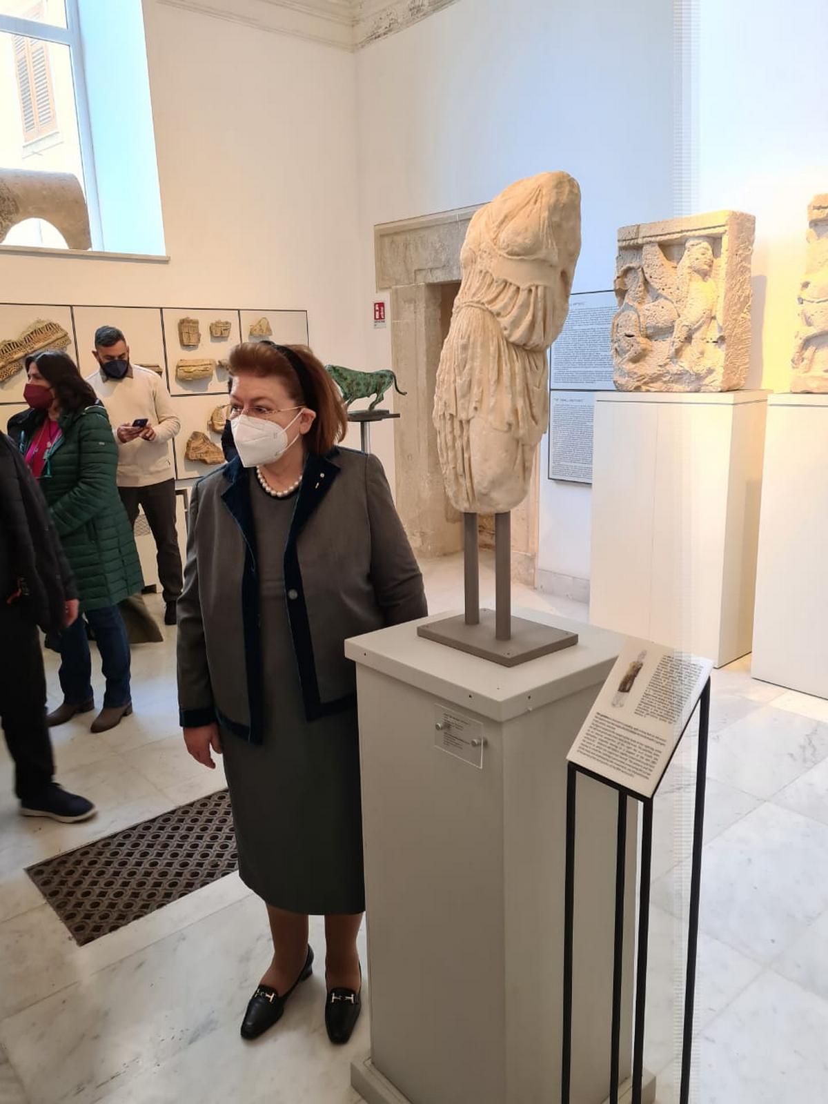 Η Υφυπουργός Πολιτισμού της Ιταλίας, Lucia Borgonzoni υπογράμμισε ότι «Οι σχέσεις μεταξύ της Ελλάδας και της Ιταλίας είναι ήδη στενές. Σήμερα γίνονται ακόμη στενότερες. Αυτό που συμβαίνει σήμερα είναι μία πολιτική πράξη μεταξύ της Ελλάδας και της Ιταλίας και αυτό έχει ιδιαίτερη σημασία. Όπως είπε η Υπουργός Λίνα Μενδώνη, ο κόσμος αξίζει να δει τα Γλυπτά του Παρθενώνα επανενωμένα. Την ίδια κατεύθυνση έδειξε και η UNESCO. Είμαι πολύ περήφανη, που η Ιταλία και η Σικελία κάνουν την πρώτη κίνηση. Αυτή τη στιγμή πρόκειται για κατάθεση, αλλά εργαζόμαστε στο Υπουργείο, προκειμένου το θραύσμα να μείνει στην Αθήνα για πάντα. Η αρμόδια επιτροπή του Υπουργείου Πολιτισμού έχει ήδη αρχίσει τις αναγκαίες διαδικασίες».