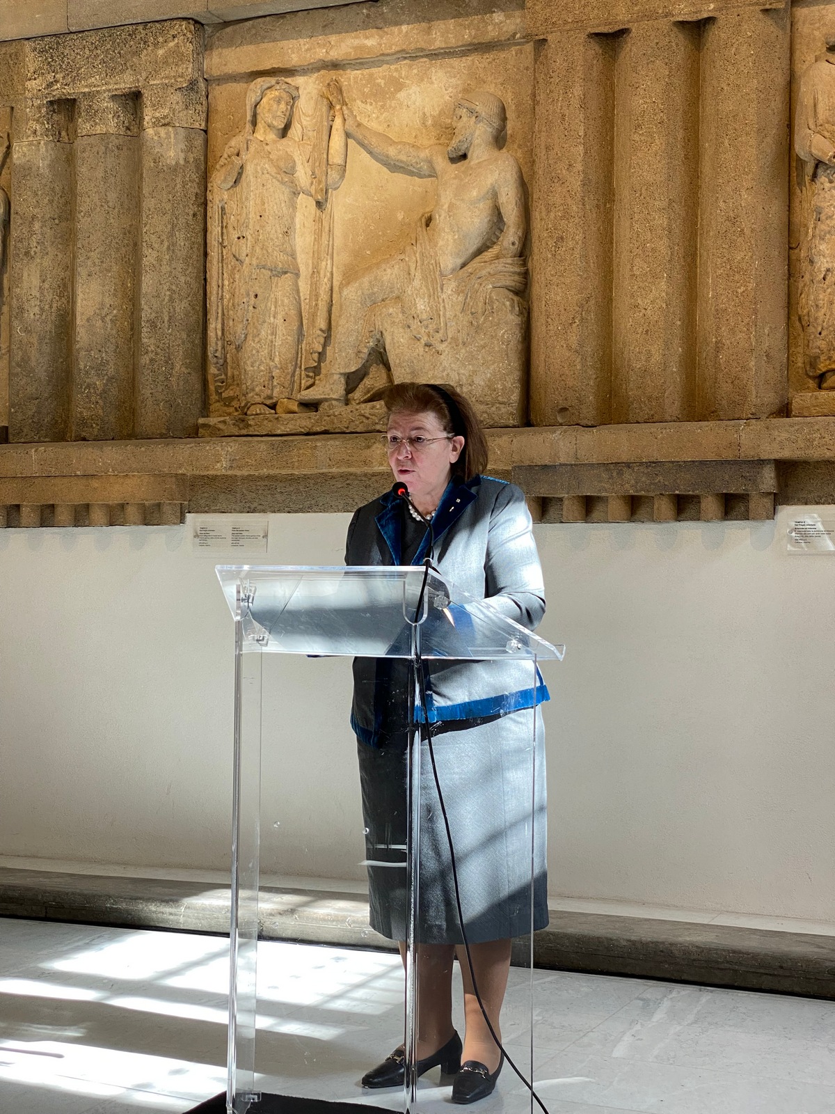 Όπως είπε στην ομιλία της η Υπουργός Πολιτισμού και Αθλητισμού Λίνα Μενδώνη, «Είναι ιδιαίτερη η χαρά και η τιμή για μένα να βρίσκομαι κοντά σας, μαζί με τον Γενικό Διευθυντή του Μουσείου της Ακρόπολης των Αθηνών και τους συνεργάτες μου, προκειμένου να ανταποδώσουμε την γενναιοδωρία που εμπεριέχει η πρωτοβουλία της Περιφερειακής Κυβέρνησης της Σικελίας και ιδιαίτερα του Assessore Alberto Samona και της Διευθύντριας Δρ Caterina Greco, όχι μόνον να καταθέσουν προς έκθεση το θραύσμα Fagan από την ζωφόρο του Παρθενώνα, για μακρό χρονικό διάστημα (4+4 χρόνια) στο Μουσείο της Ακρόπολης, αλλά και να ζητήσουν από το Υπουργείο Πολιτισμού της Ιταλικής Δημοκρατίας τον οριστικό επαναπατρισμό του στην Αθήνα. Η εκπεφρασμένη αυτή πολιτική βούληση επιβεβαιώνει τους μακρότατους δεσμούς πολιτιστικής συνάφειας και αδελφοσύνης της Ελλάδας και της Σικελίας, καθώς και την εμπράγματη αναγνώριση της κοινής μεσογειακής ταυτότητας.