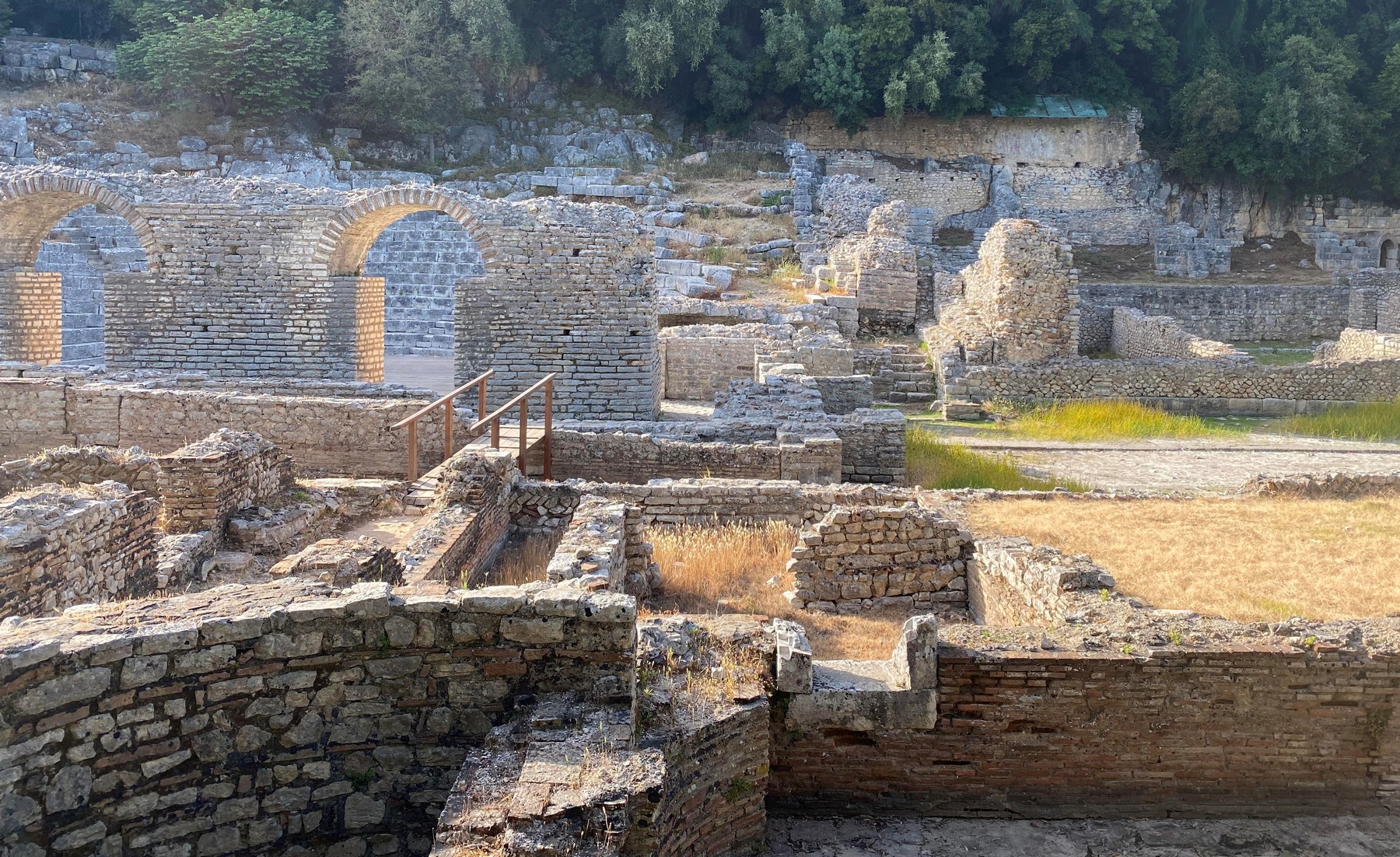Στο πλαίσιο της επίσκεψής της στην Αλβανία, η Υπουργός Πολιτισμού επισκέφθηκε, επίσης, αρχαιολογικούς χώρους και μνημεία πολιτιστικής κληρονομιάς. Η Λίνα Μενδώνη, βρέθηκε στην Απολλωνία, όπου ξεναγήθηκε στην αρχαία πόλη, αποικία των Κορινθίων, από εκπρόσωπο του Εθνικού Ινστιτούτου Κληρονομιάς της Αλβανίας. Επίσης, επισκέφθηκε την παρακείμενη Ιερά Μονή Κοιμήσεως της Θεοτόκου. Στην περιφερειακή ενότητα των Αγίων Σαράντα, η Λίνα Μενδώνη ξεναγήθηκε στον αρχαιολογικό χώρο του Βουθρωτού από τον ομογενή Καθηγητή Αρχαιολογίας του Πανεπιστημίου Αργυροκάστρου Δημήτρη Τσόντη. Κατοικημένο από τα προϊστορικά χρόνια, το Βουθρωτό υπήρξε αποικία της Κορίνθου και αργότερα έδρα χριστιανικής επισκοπής. Μετά από μια περίοδο υπό βυζαντινή διοίκηση και σύντομη κατοχή από τους Βενετούς, η πόλη εγκαταλείφθηκε στα τέλη του Μεσαίωνα λόγω χαμηλού και υγρού εδάφους. Ο σημερινός αρχαιολογικός χώρος αποτελεί μνημείο παγκόσμιας κληρονομιάς της UNESCO.