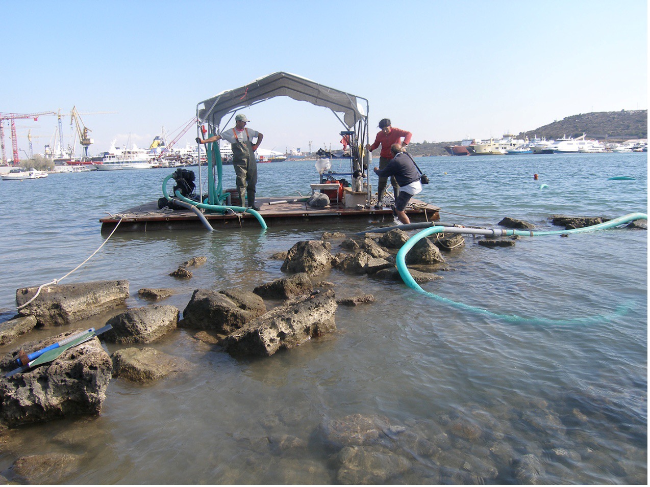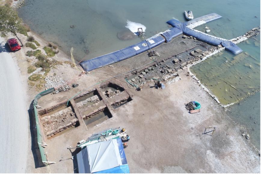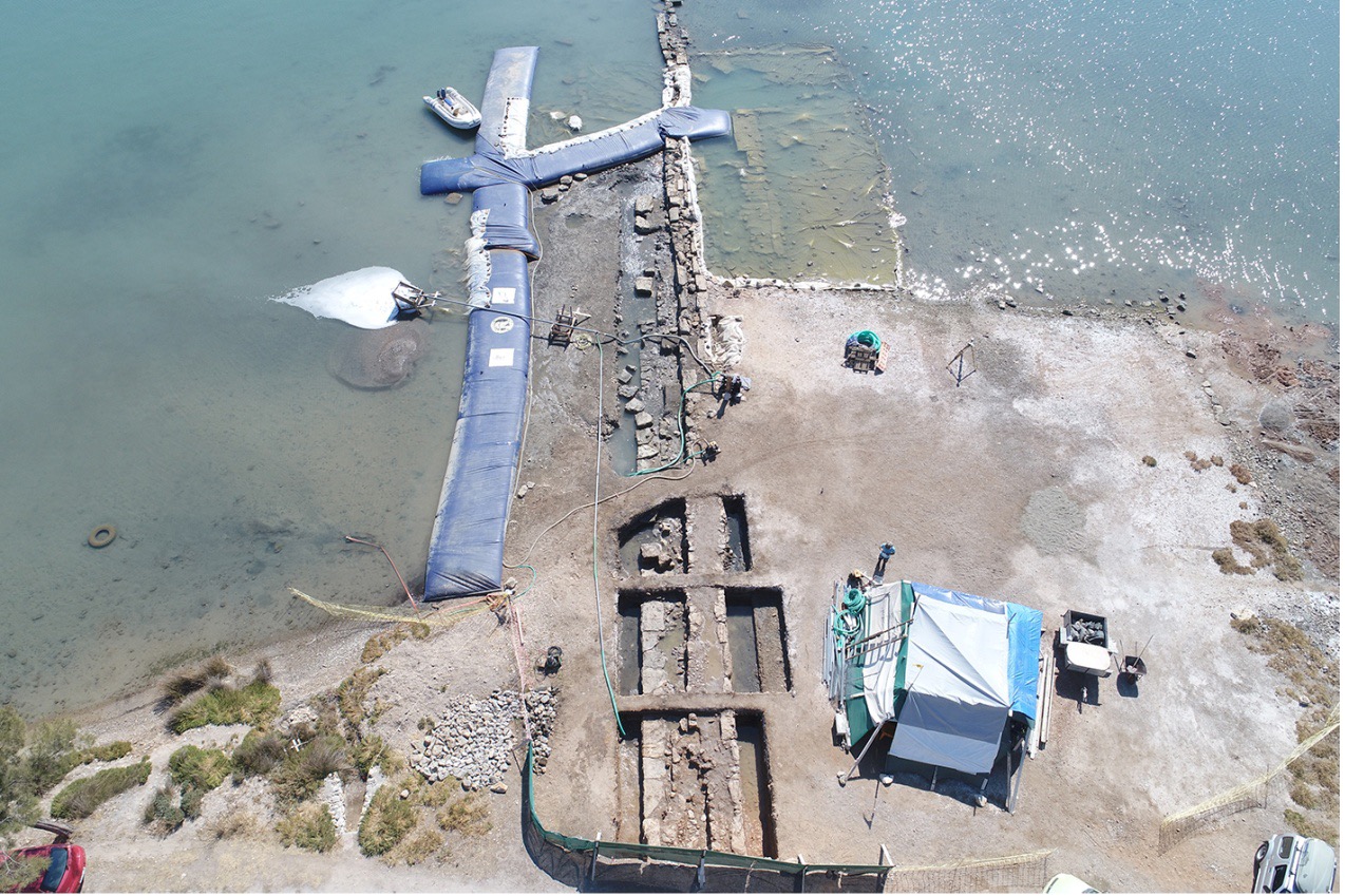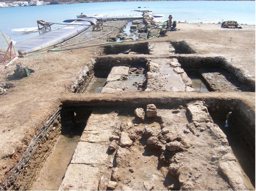 Συγκεκριμένα, συνεχίσθηκε η ανασκαφική διερεύνηση ενός μεγάλου σκέλους, εν μέρει καταβυθισμένου, του επιθαλάσσιου τείχους της Κλασικής πόλης, με κατεύθυνση Β.-Ν. Η διερεύνησή του, βάσει κανάβου με τετράγωνα 4 x 4 μ., πραγματοποιήθηκε, και πάλι επιτυχώς, με την εφαρμογή «αμφίβιας» ανασκαφικής διαδικασίας, η οποία συνδυάζει μέσα και τεχνικές της χερσαίας και υποβρύχιας Αρχαιολογίας, με την εγκατάσταση εύκαμπτου υδατοφράκτη και την χρησιμοποίηση 3 υδραντλιών, για την καθημερινή αφυδάτωση θαλασσίου πεδίου συνολικής εκτάσεως 140 μ2.